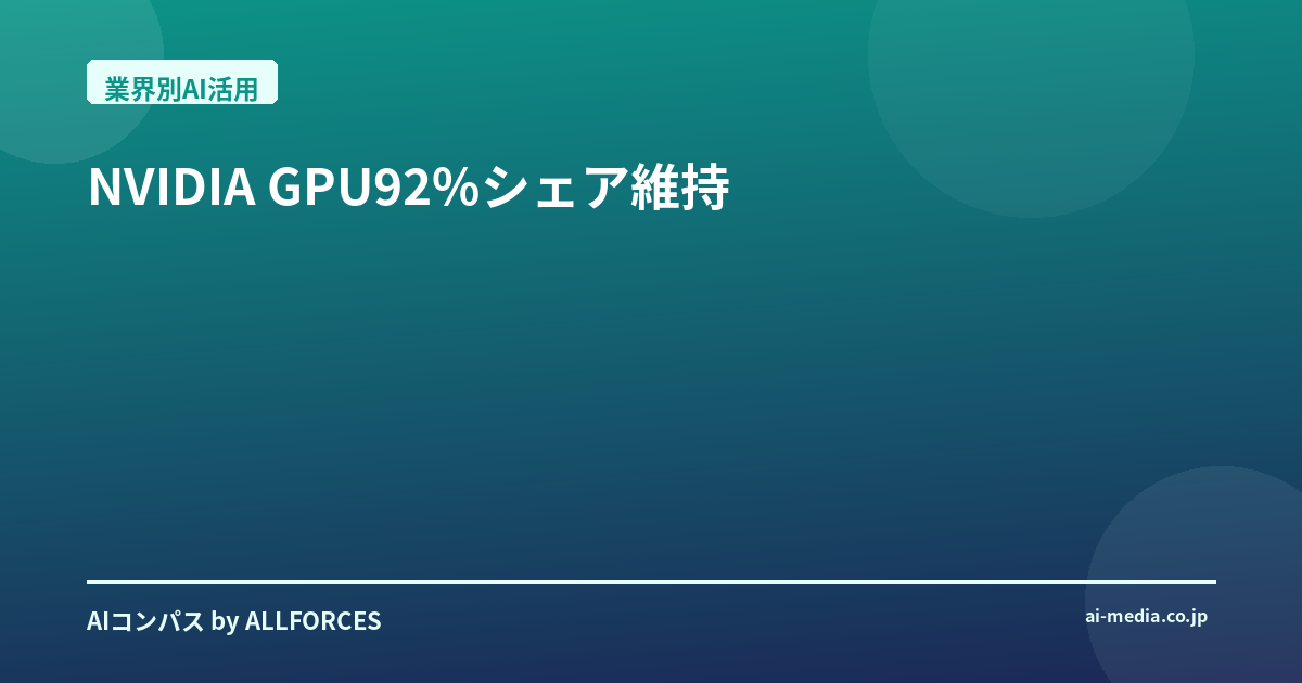 AI半導体市場はNVIDIAが92%のGPUシェアを維持し、HBM4やBlackwell B200が需要を牽引、TSMCも市場シェアを拡大