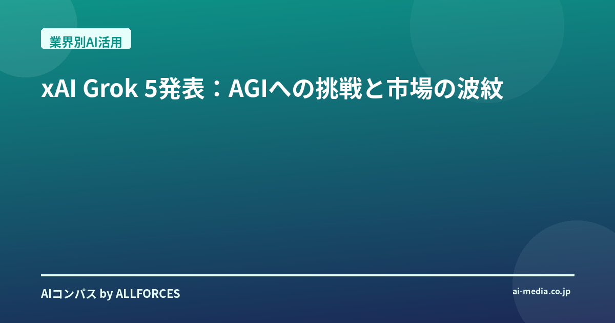 xAIのGrok-5発表は、AI市場に大きな波紋を広げています。特に、OpenAIのGPT-5との直接的な競合関係は、生成AI分野における技術革新のペースをさらに加速させるでしょう。投資家にとっては、AGIへの明確なロードマップを持つxAIの動向は、長期的な成長戦略を検討する上で重要な要素となります。Grok-5のマルチモーダル機能の強化は、画像認識、動画解析、音声処理といった分野での新たなビジネスチャンスを生み出す可能性を秘めており、関連技術への投資が活発化する可能性があります。