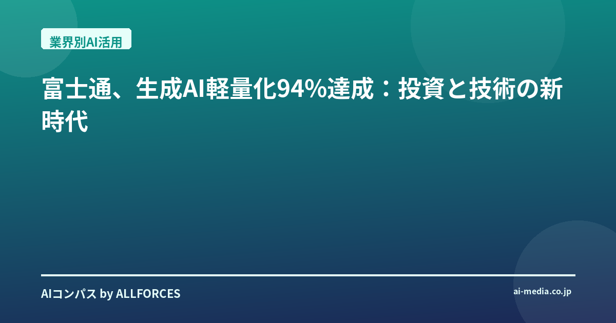 富士通、生成AI軽量化94%達成:投資と技術の新時代