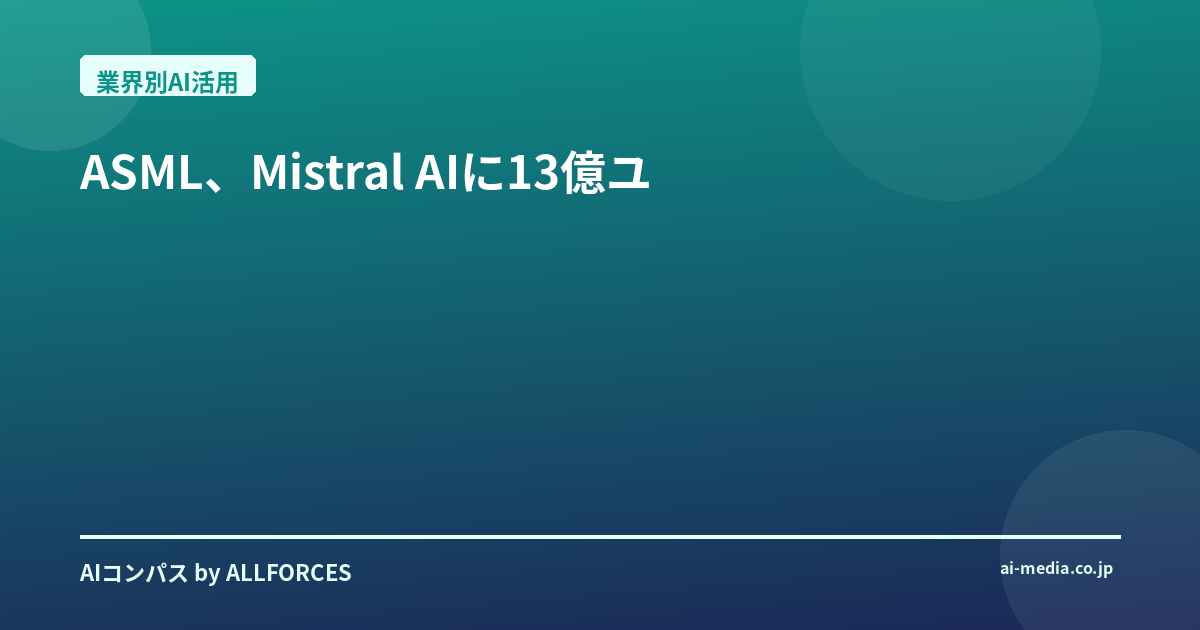ASML、Mistral AIに13億ユーロ投資:欧州AI戦略の要