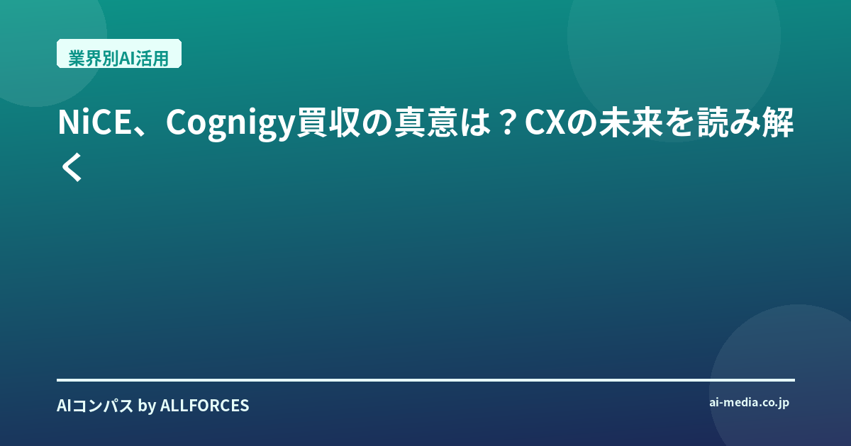 私がこの業界で20年近く、シリコンバレーのガレージスタートアップから日本の大企業のAI導入まで、文字通り数百社の浮き沈みを見てきた経験から言わせてもらうと、こういう大型買収は常に時代の転換点を示唆しているんです。かつてはCRMの統合が話題になり、その後はクラウドへの移行が叫ばれました。そして今、間違いなくAI、特に「対話型AI」と「エージェント型AI」が顧客体験(CX)の最前線を塗り替えようとしている。NiCEが約9億5,500万ドルという巨額を投じてCognigyを手に入れたのは、まさにその未来への布石だと見ています。