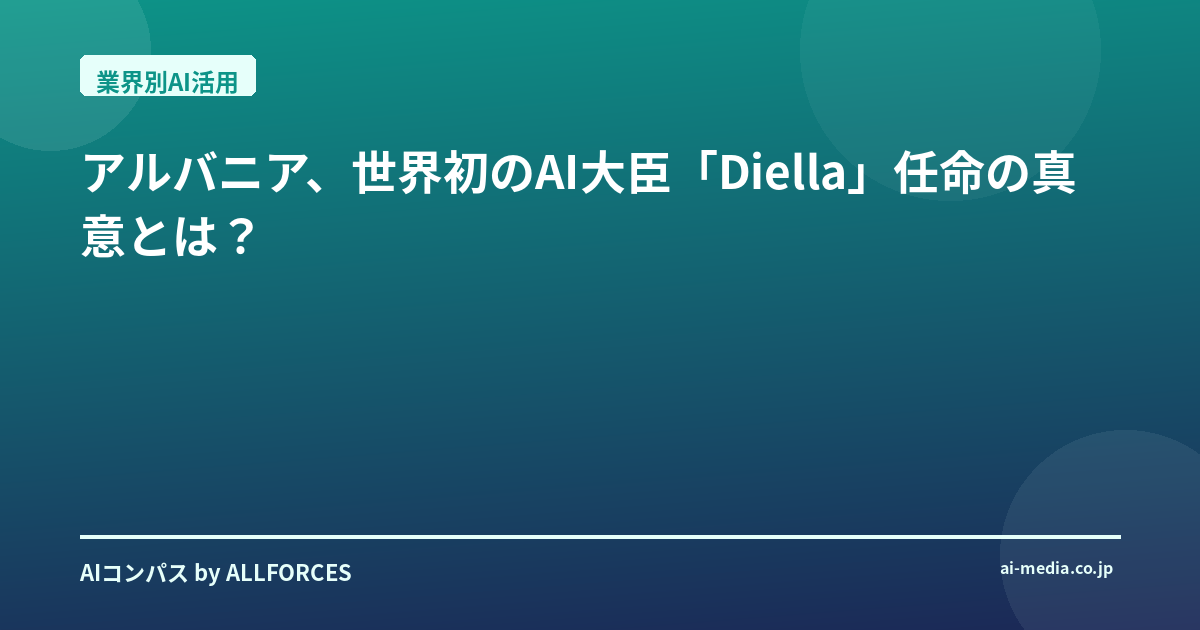 アルバニアのエディ・ラマ首相が2025年9月11日に発表した、世界初のAI生成閣僚「Diella(ディエラ)」の公共調達担当大臣への任命。Diellaはアルバニア語で「太陽」を意味するそうです。美しい名前ですよね。しかし、その背景には、長年の課題である汚職の撲滅と公共資金の透明性確保という、非常に現実的で切実な目的があります。EU加盟を目指すアルバニアにとって、汚職対策は避けて通れない道。AIにその重責を担わせるという発想は、ある意味で究極の「藁にもすがる思い」なのかもしれません。過去にも、ブロックチェーンが「透明性の救世主」と持て囃された時期がありましたが、AIはそれ以上のインパクトをもたらすのでしょうか?