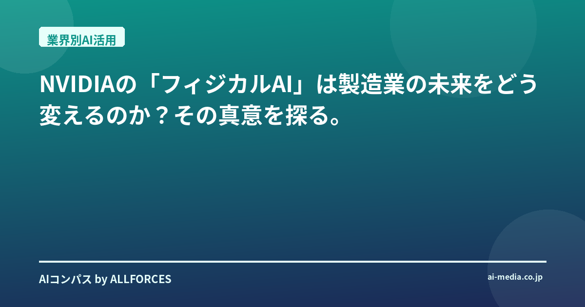 NVIDIAの「フィジカルAI」は製造業の未来をどう変えるのか?その真意を探る。 NVIDIAが「フィジカルAI」を製造業の未来の鍵だと語り始めた時、正直なところ、私は少し懐疑的でした。また新しいバズワードか、と。でも、彼らが本気でこの領域に巨額の投資をしているのを見て、これはただの流行り言葉ではないと確信しましたね。あなたも、AIが物理世界とどう融合するのか、漠然とした期待と同時に、具体的なイメージが湧かないと感じているかもしれません。 私がこの業界で20年近く、シリコンバレーのガレージスタートアップから日本の大企業まで、数えきれないほどのAI導入を見てきた中で、常に感じてきたのは「AIはデータが命」ということでした。しかし、物理世界でのAI、つまりロボットや自動運転車が自律的に動き出すためには、単なるデータ処理を超えた、もっと深い「物理法則の理解」と「リアルタイムの判断力」が求められます。これは、これまでのAIとは一線を画す、まさに「次なるフロンティア」だと感じています。 NVIDIAが提唱する「フィジカルAI」とは、まさにこの物理世界で自律的に認識し、判断し、行動するAIシステムのこと。彼らはこれを実現するために、驚くべき技術スタックを構築しています。その中心にあるのが、3D空間やデジタルツインを統合管理するプラットフォーム「NVIDIA Omniverse」です。これは単なるシミュレーションツールではありません。例えば、FoxconnがNVIDIA GB200 Grace Blackwell Superchipシステムを含むグローバルな生産施設の設計、展開、管理にOmniverseを活用しているように、現実の工場を仮想空間に再現し、そこでAIをトレーニングし、最適化する。BMWグループも生産ネットワーク全体にOmniverseを展開し、産業用AIを導入していると聞けば、その本気度が伝わるでしょう。 さらに、このOmniverse上でロボットのスキルをトレーニングし、微調整するための「Isaac Sim/Lab」や、物理世界のシミュレーションを行う基盤モデルプラットフォーム「Cosmosプラットフォーム」が連携します。特に注目すべきは、ロボットやビジョンAIエージェントが人間のように推論できるようにする70億パラメータの推論視覚言語モデル「Cosmos Reason」です。これは、AIが単にパターン認識するだけでなく、なぜその行動をとるのか、その意図を理解し、より複雑なタスクをこなすための重要な一歩だと見ています。川崎重工業が軌道保守や検査能力の変革にNVIDIA cuOptとJetson Orinを使っている事例や、トヨタが金属鍛造におけるロボットの動きとグリップの物理シミュレーションにOmniverseを活用し、ティーチング時間を短縮している話は、まさにこのフィジカルAIが現場で成果を出し始めている証拠と言えるでしょう。 NVIDIAのCEO、ジェンスン・フアン氏が「産業用AIとロボット分野、すなわちフィジカルAI市場が将来的に50兆ドル規模に達する」と予測しているのを聞くと、その数字の大きさに驚きますよね。個人的には、この数字はかなり強気だと感じていますが、彼らがこの分野に投じる投資額を見れば、その自信の根拠も理解できます。Skild AIへの2,500万ドルの投資や、欧州の製造業を支援するための産業用AIクラウド構築に5億ドルを投じるという発表は、NVIDIAが単なるチップベンダーではなく、このエコシステム全体の構築者であろうとしている明確な意思表示です。シェフラーが100以上の製造工場でAI駆動型自動化を推進するためにNVIDIAのフィジカルAIスタックを採用していることや、KIONグループがAccentureとNVIDIAと協力して次世代の自動倉庫を構築していることからも、その影響力の広がりが伺えます。 では、私たち投資家や技術者は、この「フィジカルAI」の波にどう乗るべきでしょうか?まず、技術者としては、NVIDIAのGPU技術、特にBlackwellアーキテクチャやJetson Thor AGXといったエッジデバイス向けの技術動向は常に追うべきです。そして、OmniverseやIsaac Simといったシミュレーション環境での開発スキルは、今後ますます重要になるでしょう。仮想空間での試行錯誤が、現実世界での開発コストと時間を劇的に削減するからです。Yaskawa ElectricがNVIDIA Isaacを活用して自律型ロボットの開発を進めているように、ロボット開発の現場ではすでに必須のツールになりつつあります。 投資家の方々には、NVIDIAの直接的な投資だけでなく、彼らのエコシステムに深く組み込まれている企業、例えばシーメンスのようにOmniverseとの統合を進めている産業オートメーション企業や、フィジカルAIの導入を積極的に進めている製造業大手にも注目してほしいですね。フィジカルAI市場が2030年までに年平均成長率38.5%で成長するという予測は、長期的な視点で見れば非常に魅力的な数字です。ただし、新しい技術には常にリスクが伴います。初期の導入コスト、既存システムとの連携、そして何よりも「物理世界での安全性」の確保は、今後も大きな課題として残るでしょう。 結局のところ、NVIDIAの「フィジカルAI」は、製造業が直面する