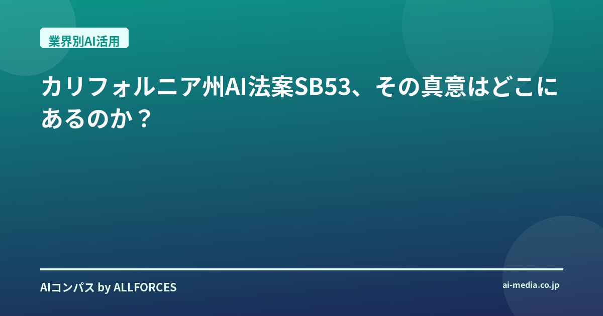カリフォルニア州AI法案SB53、その真意はどこにあるのか?
