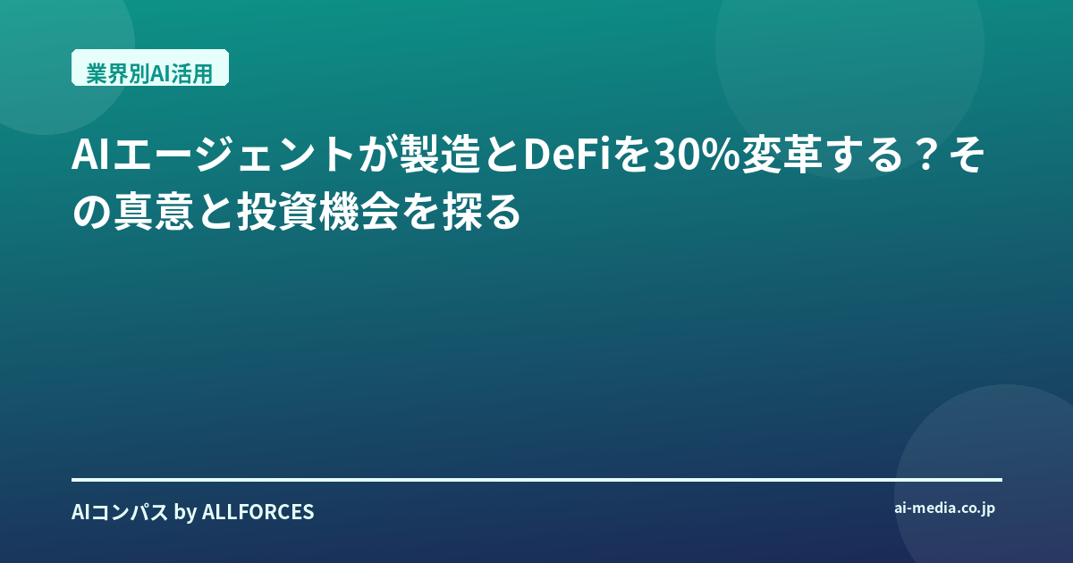 AIエージェントが製造とDeFiを30%変革する?その真意と投資機会を探る