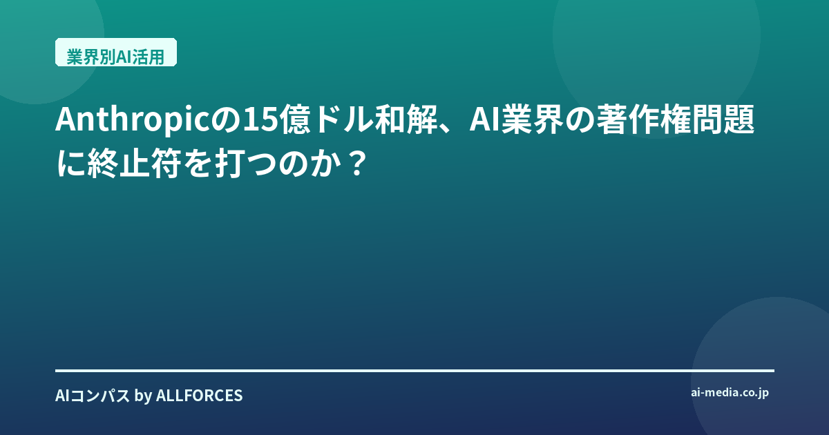 Anthropicの15億ドル和解、AI業界の著作権問題に終止符を打つのか?