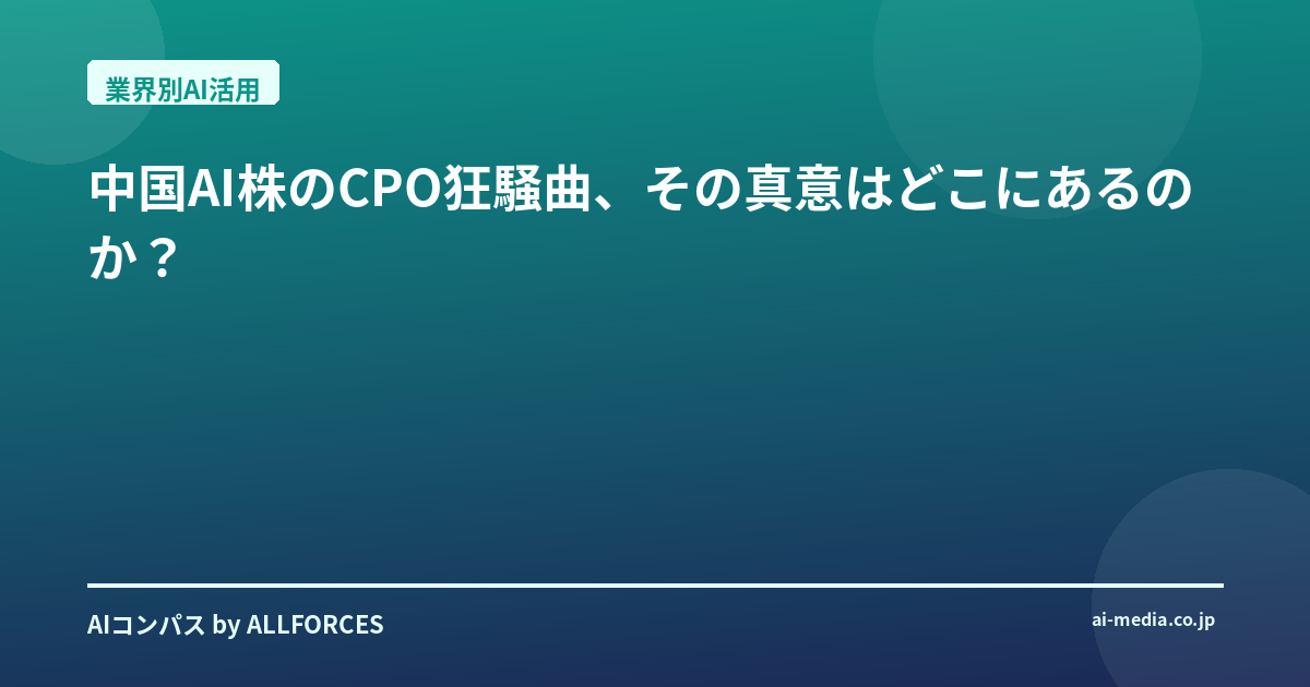 中国AI株のCPO狂騒曲、その真意はどこにあるのか?