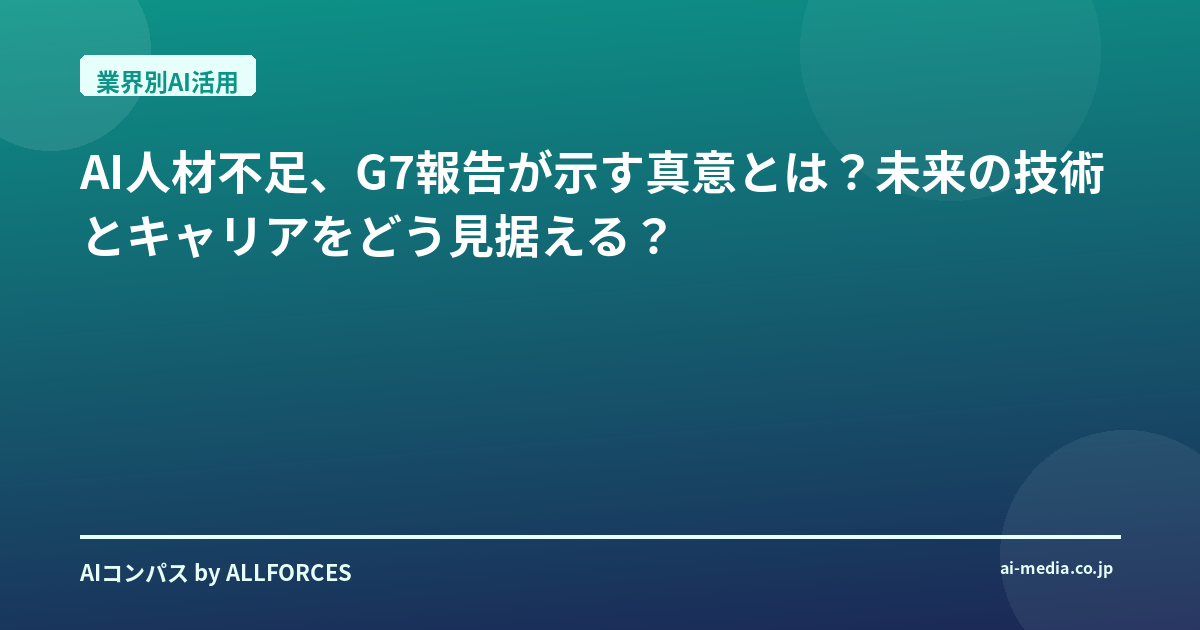 AI人材不足、G7報告が示す真意とは?未来の技術とキャリアをどう見据えるか