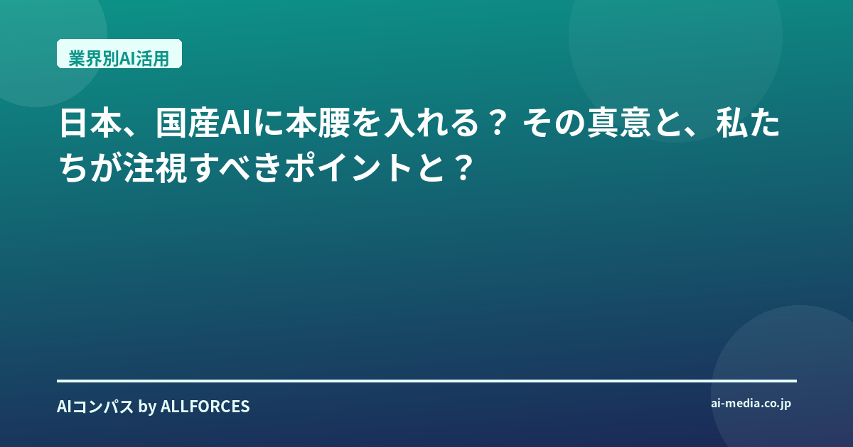 日本、国産AIに本腰を入れる? その真意と、私たちが注視すべきポイントとは