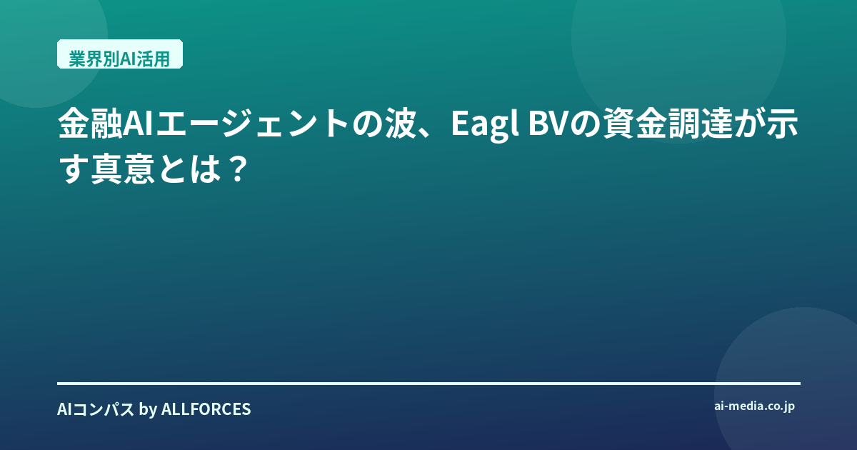 金融AIエージェントの波、Eagl BVの資金調達が示す真意とは?