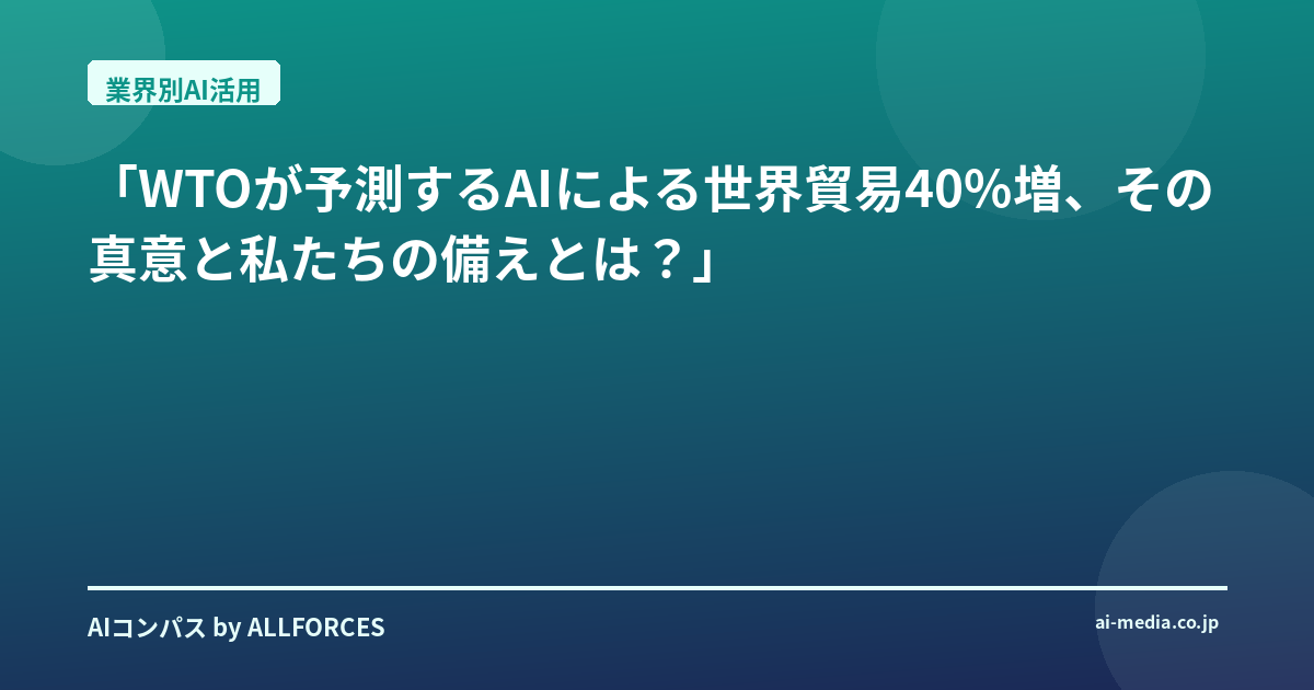 「WTOが予測するAIによる世界貿易40%増、その真意と私たちの備えとは?」