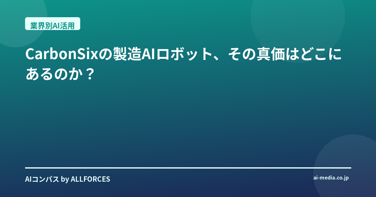 かつて「AIが全てを解決する」と謳われた時代がありましたが、その理想と現実のギャップに苦しんだ経験を、あなたも少なからずお持ちかもしれません。私も、そうした過去の「夢物語」を何度も見てきました。だからこそ、CarbonSixのアプローチには、単なる技術的な新奇性だけでなく、その裏にある「現実への深い洞察」を感じずにはいられないのです。彼らが目指すのは、AIの華やかなデモンストレーションではなく、製造現場の汗と埃にまみれた課題に、真正面から向き合うこと。これこそが、私が考える「真のブレイクスルー」の兆しです。