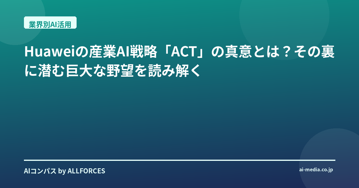 Huaweiの産業AI戦略「ACT」の真意とは?その裏に潜む巨大な野望を読み解く