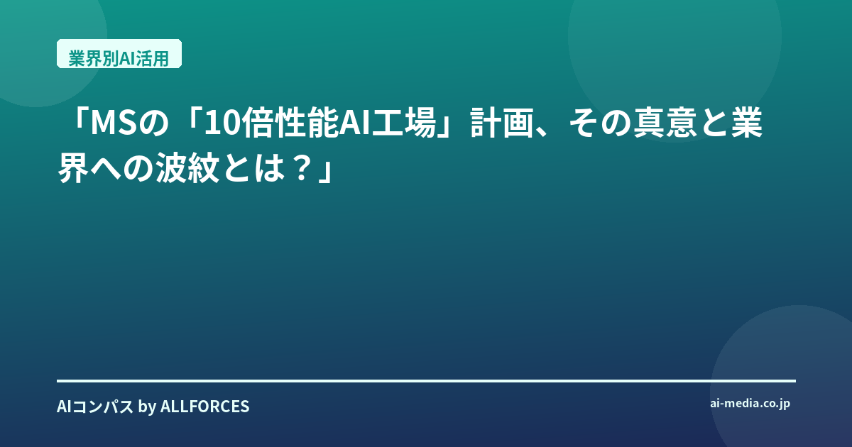 「MSの「10倍性能AI工場」計画、その真意と業界への波紋とは?」