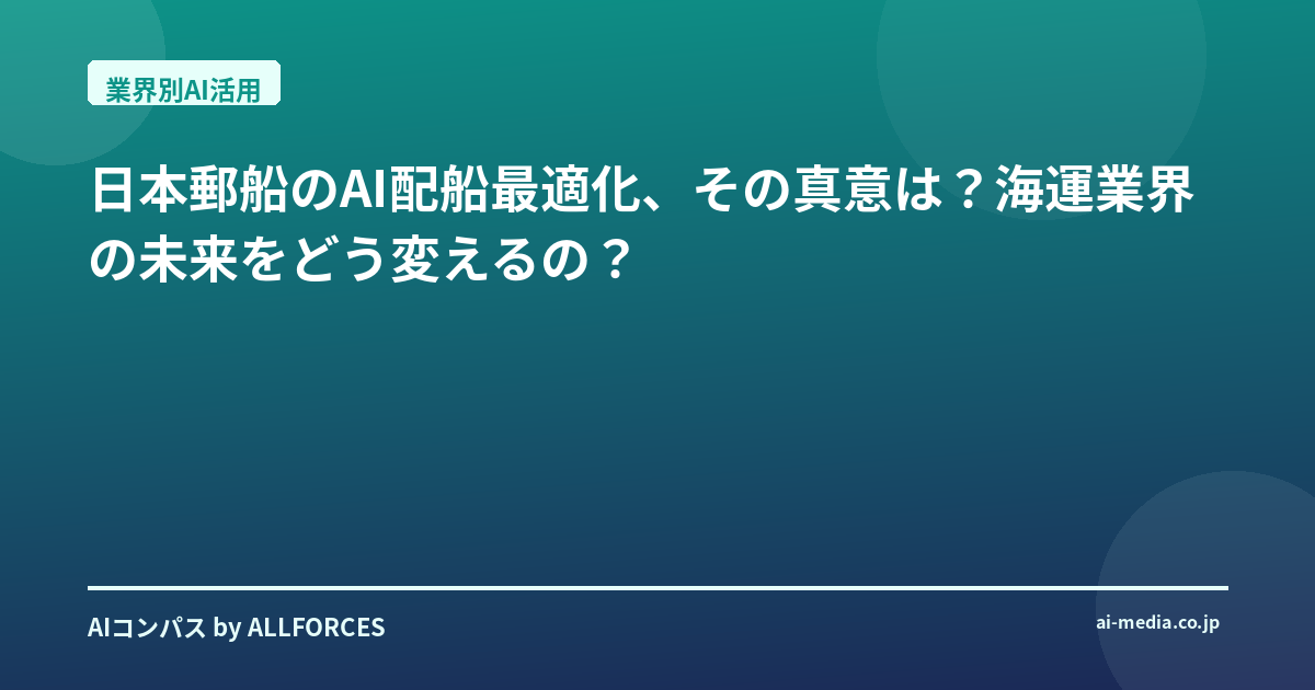 日本郵船のAI配船最適化、その真意は?海運業界の未来をどう変えるのか おや、日本郵船がAIで配船最適化ですか。正直、最初にこのニュースを聞いた時、「またAIか」と、少しばかり懐疑的な気持ちになったんですよ。あなたもそう感じたかもしれませんね。この20年間、シリコンバレーの華やかなスタートアップから、日本の老舗大企業まで、数えきれないほどのAI導入プロジェクトを見てきましたから。その中で、期待先行で終わったものも、地道に成果を出したものも、本当に色々ありました。だからこそ、今回の日本郵船の発表も、一見すると「よくある話」に見えるかもしれません。でもね、ちょっと待ってください。これは単なる「AI導入しました」という話で片付けられない、もっと深い意味があるように私には思えるんです。 海運業界、特に自動車専用船の配船計画というのは、想像を絶するほど複雑なパズルなんですよ。日本郵船が世界最大規模の100隻以上の自動車専用船を動かしていると聞けば、その規模感が少しは伝わるでしょうか。数カ月先の数百航海にわたる計画を立てるには、顧客からの膨大な要望、船隊の稼働状況、定期的な修繕予定、さらには世界各地の港での滞船リスクまで、ありとあらゆる要素を考慮しなければならない。これまでは、まさに熟練の担当者が長年の経験と勘を頼りに、徹夜で頭を悩ませていた、いわば「職人技」の世界でした。私もかつて、ある物流企業の倉庫最適化プロジェクトで、ベテランの担当者がホワイトボードいっぱいに手書きの図面を広げ、何時間も唸っていた姿を思い出します。あの時の「人間がやれることの限界」を目の当たりにした経験があるからこそ、今回のAIの役割には特に注目しているんです。 今回の日本郵船の取り組みの核心は、MTIとグリッド(GRID)というパートナーシップにあると見ています。MTIは日本郵船グループの技術研究開発会社ですから、海運のドメイン知識は言うまでもなく豊富です。そこに、AI技術の専門家であるグリッドが加わることで、単なるデータ処理に留まらない、実用的な「配船計画自動最適化システム」が生まれたわけです。驚くべきは、このシステムが数カ月先までの数百万通りの配船スケジュールを、わずか約10分で試算し、最適な計画を生成できるという点です。これは、人間の手では到底不可能なスピードと精度ですよ。 具体的にAIが何を最適化しているのか、ここが肝心です。単に「早く計画を立てる」だけではありません。顧客の要望、船隊の稼働状況、修繕予定、港での滞船リスクといった従来の要素に加え、彼らは「次世代燃料船の活用」や「カーボンプライシング」まで考慮に入れているというから、これはもう未来を見据えた戦略的な一手と言えるでしょう。船舶稼働率、輸送効率、輸送コストといった経済的なKPI(主要業績評価指標)の最適化はもちろんのこと、温室効果ガス(GHG)排出量の削減という環境面での貢献も強く意識している。これは、単なるコスト削減を超えて、企業価値そのものを高めるESG経営の視点から見ても非常に重要ですし、正直なところ、AIがここまで複雑な環境要因まで考慮して、経済性と環境持続性の両立を目指すとは、数年前には考えられなかった進化だと感じています。 では、この動きは投資家や技術者にとって何を意味するのでしょうか? 投資家の皆さんには、日本郵船が単なる海運会社ではなく、テクノロジーを戦略的に活用して競争優位を築こうとしている企業として評価すべきだとお伝えしたい。AIによる効率化は、短期的なコスト削減だけでなく、長期的なGHG排出量削減目標達成への道筋を示し、企業のレジリエンスを高めます。これは、ESG投資の観点からも非常に魅力的な要素です。ただし、AI導入には常にリスクも伴います。システムの安定稼働、予期せぬエラーへの対応、そして何よりも、このAIが生成する計画を最終的に判断する人間の役割がどう変わっていくのか、そのあたりは引き続き注視していく必要があります。 そして、技術者の皆さん。今回の事例は、AIが「現場の知恵」と融合することで、いかに大きな価値を生み出すかを示す好例です。グリッドのようなAIベンダーの技術力もさることながら、日本郵船やMTIが持つ海運の深いドメイン知識がなければ、このシステムは絵に描いた餅で終わっていたでしょう。AIを導入する際には、単に最新のアルゴリズムを追いかけるだけでなく、現場の課題を深く理解し、データとして表現する能力が不可欠だと改めて感じます。また、AIが導き出した「最適解」を、現場の人間がどう受け入れ、どう活用していくか、そのインターフェース設計や運用プロセスも、技術者にとっての大きな挑戦となるはずです。 日本郵船のこの取り組みは、海運業界全体に大きな波紋を広げる可能性を秘めています。他の海運会社も追随するでしょうし、サプライチェーン全体の最適化へと議論が発展していくのは間違いありませ