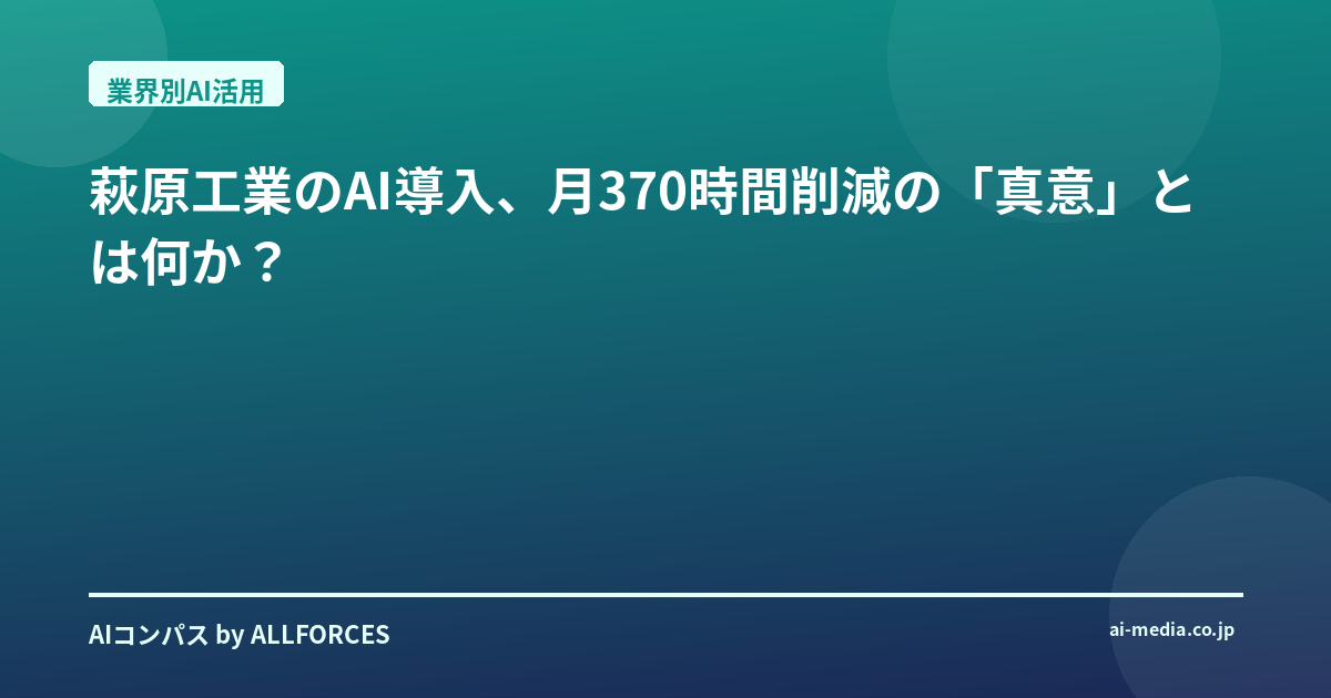萩原工業さんの「月370時間削減」という数字は、単なる効率化の指標に留まりません。それは、AIがもたらす「働きがい」と「イノベーション」、そして「持続可能な企業成長」への道筋を示す、希望の数字だと私は確信しています。あなたの会社でも、この「地味だけど効く」AI活用のヒントを、ぜひ自社の未来に繋げてみてください。きっと、その先に、想像以上の価値が待っているはずです。