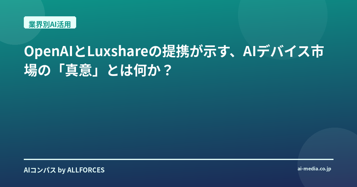 OpenAIとLuxshareの提携が示す、AIデバイス市場の「真意」とは何か? 正直なところ、このニュースを聞いた時、私自身も「またか」と少しばかり懐疑的になりました。OpenAIがLuxshareと組んでAIデバイスを開発する、と。あなたも感じているかもしれませんが、AI業界を20年近く見てきた人間としては、ソフトウェアの巨人がハードウェアに手を出すたびに、その成功の難しさを痛感してきたからです。しかし、今回は少し様子が違うかもしれません。 考えてみてください。これまでAIは、スマートフォンやPCといった既存のデバイスに「機能」として組み込まれることがほとんどでした。SiriやGoogleアシスタント、あるいは画像生成AIアプリがその典型です。でも、OpenAIが目指しているのは、どうやらその先にある「AIネイティブ」なデバイスのようです。これは単なる機能追加ではなく、AIがそのデバイスの存在意義そのものになる、というパラダイムシフトを意味します。 今回の提報の核心は、OpenAIが元Appleのデザイン責任者であるジョニー・アイブ氏が共同設立したハードウェアスタートアップio Productsを65億ドルという巨額で買収したことにあります。SoftBankの支援も受けているこの買収は、OpenAIが本気でハードウェア市場に参入する覚悟を示している証拠でしょう。さらに、Appleの主要サプライヤーであるLuxshare Precision Industry Co., Ltd.(立訊精密工業)を製造パートナーに選んだこと、そしてGoertek(歌爾声学)ともスピーカーモジュールなどの部品供給で協議しているという事実は、彼らがAppleのサプライチェーンのノウハウを最大限に活用しようとしていることを物語っています。これは、単なる試作レベルではなく、最初から大規模な量産を見据えているということ。 彼らが最初に焦点を当てているのは、スクリーンを持たないスマートスピーカーのようなデバイスだと言われています。コンパクトで状況認識能力が高く、OpenAIの高度な言語モデルによって直接駆動される。高品質なオーディオインタラクションに重点が置かれる可能性も高いですね。さらに、メガネ、ウェアラブルピン、デジタルボイスレコーダーといった、よりパーソナルなデバイスの構想も浮上しています。これらは、まさに「AIが常にそばにいて、私たちの生活をシームレスにサポートする」という未来像を具現化しようとしているかのようです。 技術的な側面から見ると、OpenAIはNVIDIAへの依存から脱却し、Broadcom、TSMC、AMD、GoogleといったマルチパートナーAIハードウェアエコシステムへの移行を進めている点も注目に値します。1000億ドル規模のTitan XPUプロジェクトや、2025年から2030年にかけて1500億ドルものコンピューティング費用を投じる計画は、彼らがAIハードウェアのサプライチェーン全体を自社でコントロールし、コスト削減と安定供給を確保しようとしている強い意志を感じさせます。これは、AIモデルの進化がハードウェアのボトルネックに直面する中で、必然的な流れとも言えるでしょう。 投資家の方々にとっては、Luxshareの株価がこのニュースを受けて10%も急騰したという事実は、AIハードウェア分野への期待の表れと見ていいでしょう。しかし、個人的には、この分野はまだ黎明期であり、成功への道は決して平坦ではないと見ています。過去にも75%以上の企業が「次世代デバイス」を謳って市場に参入し、苦戦を強いられてきました。OpenAIのブランド力と技術力は疑いようがありませんが、消費者向けハードウェアは、ソフトウェアとは異なるデザイン、使いやすさ、そして何よりも「必要性」が問われます。 エンジニアの皆さんには、この「AIネイティブ」という概念が、新たな開発のフロンティアとなることをお伝えしたいです。既存のOSやプラットフォームに縛られない、AIを核としたデバイス設計は、これまでの常識を覆す可能性を秘めています。ユーザーインターフェース(UI)やユーザーエクスペリエンス(UX)も、音声やジェスチャーといった、より自然なインタラクションが中心になるでしょう。これは、まさに新しい時代の幕開けと言えるのではないでしょうか。 2026年後半から2027年前半という初期リリース目標は、まだ少し先の話です。しかし、この動きは、AIが私たちの生活に、より深く、よりパーソナルな形で浸透していく未来を予感させます。OpenAIが描く「AIネイティブ」な世界は、本当に私たちの日常を根底から変えることができるのでしょうか?そして、その中で私たちはどのような新しい価値を見出すことになるのでしょうね。 正直なところ、この問いに対する明確な答えは、まだ誰も持っていないでしょう。しかし、OpenAIの動きは、AIが単なるツールや機能の域を超え、私たちの「パートナー」として、あるいは「環境」の一部として存在し始める未来を強く示唆しています。これは、私たちがこれまで慣れ親しんできたスマートフォンやPCといったデバイスの概念を、根本から覆す可能性を秘めていると私は見ています。