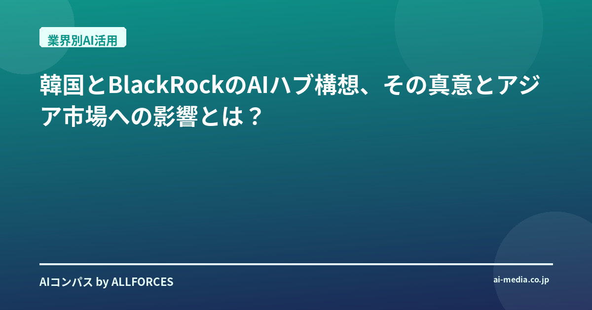 おや、これは面白い動きだね。韓国政府が世界最大の資産運用会社であるBlackRockと手を組み、「アジアのAI首都」を目指すというニュース、君はどう感じたかな?正直なところ、私のような古参のアナリストから見ると、最初は「また『ハブ』か」と少し懐疑的な気持ちになったのも事実だよ。でもね、BlackRockのラリー・フィンクCEOが直接乗り出し、しかもその背後にはAIインフラストラクチャー・パートナーシップ(AIP)という巨大な構想が見え隠れしている。これはただのリップサービスでは終わらないかもしれない、そう直感したんだ。
