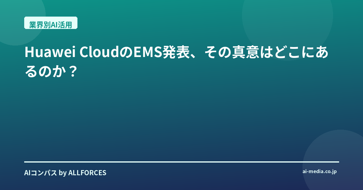 今回のHuawei CloudのEMS発表は、単なる技術的なブレークスルーというだけでなく、AIインフラ市場における競争の激化と、Huawei Cloudの戦略的な意図を強く感じさせます。