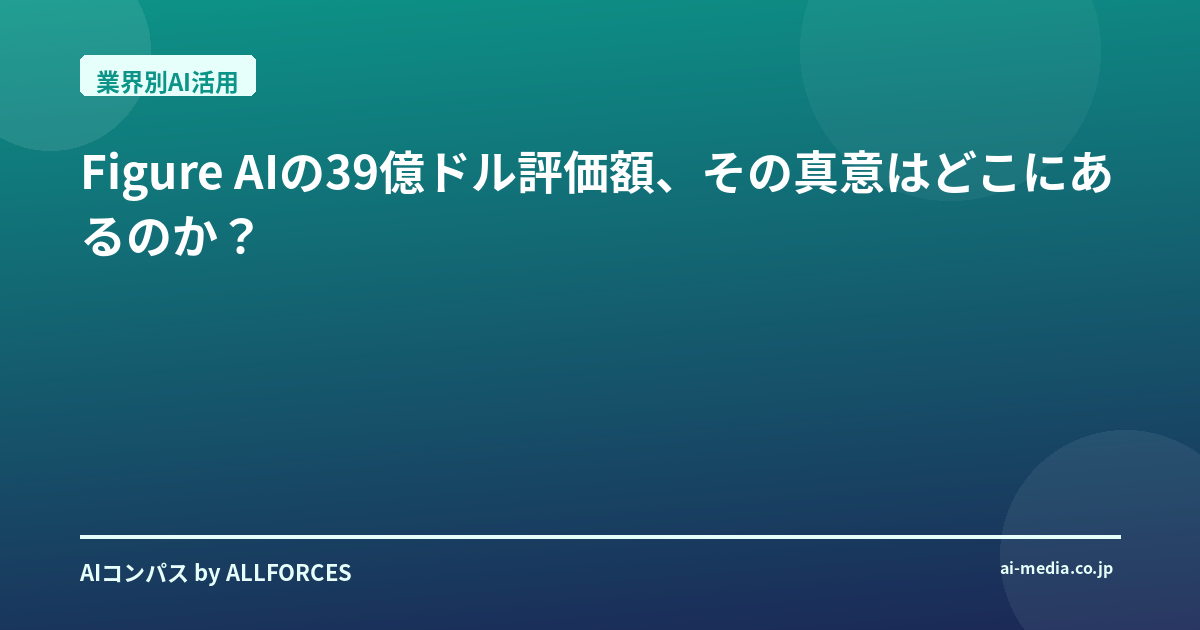 Figure AIの39億ドル評価額、その真意はどこにあるのか? 正直なところ、Figure AIが10億ドルを超える資金を調達し、評価額が390億ドルに達したというニュースを聞いたとき、私の最初の反応は「またか」というものでした。あなたも感じているかもしれませんが、AIとロボティクスの分野では、期待先行で過熱するバブルのような現象を何度も見てきましたから