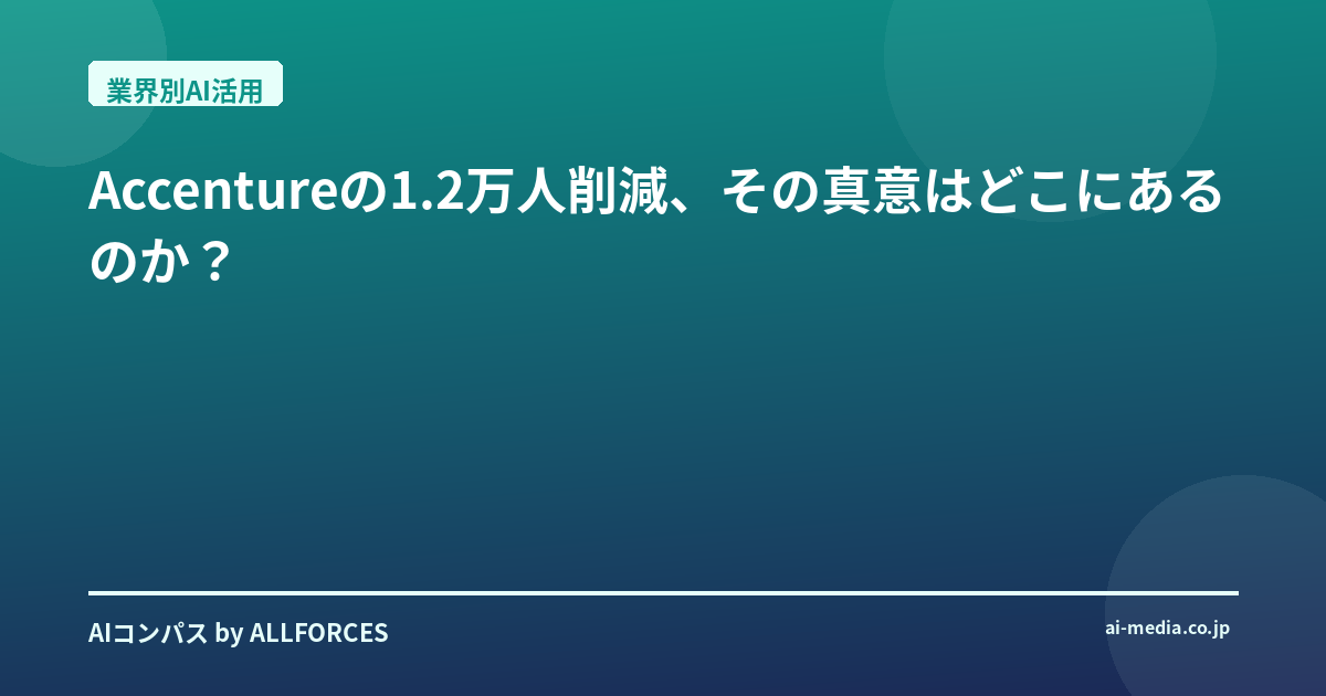 Accentureの1.2万人削減、その真意はどこにあるのか? 「AccentureがAIで1.2万人削減」――このニュースを聞いて、あなたも一瞬、ドキッとしたのではないでしょうか。正直なところ、私も最初にこの見出しを見た時、20年前のドットコムバブル崩壊や、リーマンショック後のリストラの記憶が頭をよぎりました。AIが雇用を奪うという漠然とした不安が、具体的な数字として目の前に現れたような感覚ですよね。しかし、長年この業界を見てきた経験から言わせてもらうと、物事はそう単純ではありません。これは単なる人員削減の話ではなく、もっと深く、AIが企業と働き方を根本から「再発明」しようとしている、その前触れだと私は見ています。 考えてみれば、AIの進化はここ数年で劇的でした。特に生成AIの登場は、まるでSFの世界が現実になったかのよう。私が初めてディープラーニングの可能性に触れた頃は、画像認識や音声認識の精度向上に驚いていたものですが、今やChatGPTのようなモデルが自然な文章を生成し、MidjourneyやDALL-Eが驚くほど高品質な画像を創り出す時代です。そして、Accentureのような巨大なコンサルティングファームが、この波にどう乗るかは、業界全体の未来を占う上で非常に重要な指標となります。彼らは単に新しい技術を導入するだけでなく、クライアントの「再発明パートナー」として、AI駆動型ビジネスモデルへの変革をリードしようとしているのですから。 今回のAccentureの動きを詳しく見ていくと、約779,000人の従業員のうち、直近3ヶ月で約12,000人が減少したという数字があります。これは全体の約1.5%に相当し、決して小さな数字ではありません。しかし、彼らが発表しているのは、パフォーマンスではなく「スキルのミスマッチ」による削減だという点です。つまり、AI時代に求められるスキルセットへの転換が間に合わなかった従業員が対象になったということ。これは、企業がAIを導入する際に直面する、最も現実的で避けられない課題の1つです。同時に、Accentureはデータ&AI部門に3年間で30億ドルという巨額の投資を行い、AI関連の従業員数を2年間で40,000人から77,000人へとほぼ倍増させています。さらに、550,000人以上の従業員が生成AIの基礎トレーニングを受け、全世界で70万人以上が高度なAI機能に関するトレーニングを受けているというから驚きです。彼らの「Technology Vision 2025」で掲げられている「AI駆動型自律性」というビジョンは、単なるスローガンではなく、具体的な人材戦略と投資に裏打ちされているわけです。 そして、興味深いことに、Accentureはインドのヴィシャカパトナムに新施設を建設し、今後数年間で12,000人の新規雇用を創出する計画も発表しています。これは、削減された人数とほぼ同数です。つまり、彼らは単に人員を減らしているのではなく、AI時代に最適化された新しい人材ポートフォリオへと、大胆かつ戦略的にシフトしていると解釈できます。これは、かつて製造業が海外に生産拠点を移したように、知識労働の分野でも「AIに適応した人材」と「そうでない人材」の再配置がグローバル規模で進んでいることを示唆しているのかもしれません。 では、私たち投資家や技術者は、この動きから何を学ぶべきでしょうか?まず、投資家にとっては、AIへの積極的な投資と人材育成にコミットしている企業こそが、長期的な成長を期待できるという明確なシグナルです。単にAIを導入するだけでなく、それを組織全体に浸透させ、新しい価値創造の源泉とできるかどうかが鍵となります。Accentureが注力するエージェントAIや物理AIといった分野は、今後のビジネスモデルを大きく変える可能性を秘めており、これらの技術を開発・提供するスタートアップや、それを活用して業界を再定義する企業には注目すべきでしょう。 一方、技術者にとっては、これは自己変革を迫られる厳しい現実を突きつけています。AIは私たちの仕事を奪うのではなく、仕事のやり方を変え、より高度なスキルを要求するようになる。PythonやTensorFlow、PyTorchといったAI開発の基盤技術はもちろんのこと、プロンプトエンジニアリングや、AIモデルの倫理的利用、そしてビジネス課題をAIで解決するコンサルティング能力など、求められるスキルは多岐にわたります。常に学び続け、新しい技術トレンドにアンテナを張り、自身のスキルセットをアップデートしていくことが不可欠です。私も、新しいLLMの論文が出るたびに、その本質を理解しようと必死に食らいついています。時には「こんなに早く進化するなんて!」と驚きを隠せないこともありますが、それがこの業界の醍醐味でもありますよね。 今回のAccentureの事例は、AIがもたらす変革が、単なる効率化の域を超え、企業の組織構造や人材戦略にまで深く影響を及ぼすことを示しています。これは、AIが私たちの働き方、そして社会そのものをどのように「再発明」していくのかを考える上で、非常に重要なケーススタディとなるでしょう。あなた