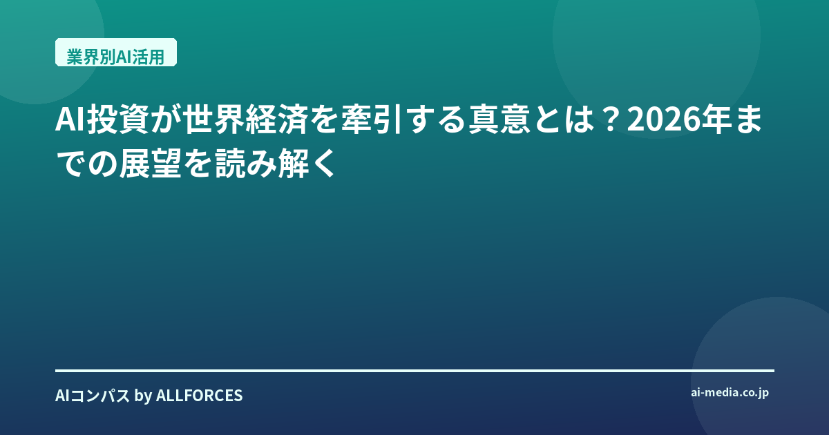 AI投資が世界経済を牽引する真意とは?2026年までの展望を読み解く 「AI投資が2026年まで世界経済を牽引する」――こんな見出しを目にすると、正直なところ、またか、と思う人もいるかもしれませんね。あなたも感じているかもしれませんが、この20年間、AI業界を間近で見てきた私としては、この手の「未来予測」にはいつも一抹の懐疑心がつきまといます。でもね、今回はちょっと違う。単なるバズワードで終わらない、もっと深い変化の兆しを感じているんです。 私がこの業界に入った頃、AIはまだ研究室の奥深くで、一部の専門家だけが知る「夢の技術」でした。何度か「AIブーム」が来ては去り、そのたびに「結局、何ができるんだ?」という声を聞いてきました。しかし、ここ数年の進化は、過去のそれとは一線を画します。特に、生成AIの登場は、まるで魔法のようでしたね。ChatGPTのようなモデルが一般に公開され、誰もがその可能性に触れられるようになった。これが、今回の投資熱の背景にある、最も大きな変化だと私は見ています。 Gartnerの予測では、世界のAI支出総額は2026年には2兆ドルを超えると言われています。これはもう、単なるトレンドではなく、経済の構造そのものを変えるほどの巨大なうねりです。特に注目すべきは、その投資の焦点が、単なるAIモデルの開発だけでなく、それを支えるAIインフラの拡張に集中している点です。データセンター、次世代チップ、そしてそれらを繋ぐネットワーク。これらが、まるで新しい産業革命の基盤のように、猛烈な勢いで構築されているんです。 考えてみてください。NVIDIAがAI開発に不可欠なデータセンターチップ(GPU)を供給し、OpenAIが自社チップ開発に100億ドルを投じ、Broadcomと提携して巨大データセンターを構築しようとしている。これは、単にソフトウェアが進化するだけでなく、その土台となるハードウェアが、まるで生き物のように成長している証拠です。Googleは独自のTPUでAI検索の進化を加速させ、MicrosoftはAzure AIを通じて大規模な投資を続けています。AMDやIntelもこのチップ競争に参戦し、ASMLのような企業がその製造装置で記録的な受注残を抱えている。これらはすべて、AIが「絵空事」ではなく、具体的な「モノ」として経済を動かしている証拠なんです。 そして、この投資は、半導体やIT企業だけにとどまりません。データセンター建設には金属や建設資材が必要ですし、それらを運ぶには海運が活発になります。電力需要の増加は、送電網や再生可能エネルギーへの投資を促進し、Rolls-Royceが小型原子力発電所のような革新的なエネルギー生成方法を開発しているのも、この文脈で理解できます。政府も、米国のCHIPS法や欧州連合、日本、韓国による税制優遇措置などで、このAIサプライチェーン全体を後押ししています。 技術面では、AIエージェントの台頭が特に興味深いですね。自律的に動作するAIが、顧客サービスやサプライチェーン管理、金融、さらにはヘルスケア分野で低リスクの患者対応サービスを提供し、年間最大1,500億ドルの医療費削減に貢献する可能性まで指摘されています。これは、単なる自動化を超え、AIが自ら判断し、行動する「次のフェーズ」に入ったことを意味します。また、物理AI、つまり自律走行車や人型ロボット、IoTデバイスなど、物理世界とAIが融合する領域も急速に進化しています。製造業や物流、農業といった分野での効率性と安全性向上は、もうSFの世界の話ではありません。 もちろん、懸念がないわけではありません。2026年は「AIエコノミー」にとって、投資が本当に収益性を生み出すかどうかが問われる「ROIの審判の日」になるかもしれません。そして、雇用への影響も無視できません。2026年末までに、企業の37%がAIによって従業員を代替すると予想されているというデータは、私たちに重い問いを投げかけています。特に、AIスキルを持たない従業員やエントリーレベルの従業員がリスクに直面するという指摘は、社会全体で取り組むべき課題でしょう。 では、私たち投資家や技術者は、この大きな波にどう乗るべきでしょうか?投資家としては、単に「AI」という言葉に飛びつくのではなく、その裏側にあるインフラ、つまりNVIDIAのようなGPUメーカーや、Vertiv Holdings、Super Micro Computer、Arista NetworksといったAIインフラ関連企業に目を向けるべきです。また、AdobeがLLM OptimizerでAI関連のARRを50%成長させているように、既存のビジネスにAIを深く統合し、具体的な価値を生み出している企業を見極める目も必要です。 技術者であれば、GPT-5のような次世代生成AIモデルの進化を追いかけるのはもちろん、AIエージェントの開発や、物理AIと現実世界との接点に特化するのも面白いでしょう。そして、忘れてはならないのがAIガバナンスとセキュリティです。「Bring Your Own AI (BYOAI)」のような新たな脅威に対応できる堅牢なフレームワークの構築は、これからのAI社会を支える上で不可欠な技術です。 このAIが牽引する経