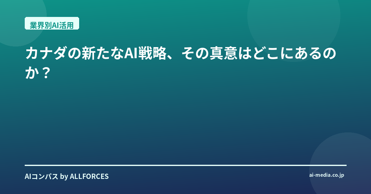 あなたも、このカナダの挑戦に注目し、その動きを追い続けることで、AIの未来を形作るヒントを掴んでみませんか?彼らの取り組みは、私たち自身のAI戦略を考える上でも、多くの示唆を与えてくれるはずです。