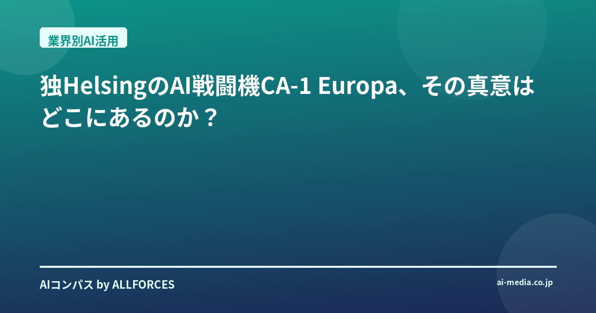 独HelsingのAI戦闘機CA-1 Europa、その真意はどこにあるのか? 正直なところ、最初に「HelsingがAI戦闘機CA-1 Europaを発表」というニュースを見た時、私は少し眉をひそめました。また新しい「AIが全てを変える」系の話か、と。この20年間、シリコンバレーのスタートアップから日本の大企業まで、数えきれないほどのAI導入プロジェクトを見てきましたが、防衛分野、それも戦闘機となると、話はそう単純じゃない。あなたもそう感じているかもしれませんね。でも、今回の発表は、単なる技術デモとは一線を画す、もっと深い意味を持っているように思えるんです。 防衛産業におけるAIの重要性は、今に始まったことではありません。私がまだ若かった頃、AIは主にシミュレーションやデータ分析の補助的な役割を担っていました。しかし、Helsingの共同創設者であるトーステン・ライル(元NaturalMotionのゲーム開発者ですよ!)やグンドベルト・シェルプ(ドイツ国防省出身、マッキンゼーの航空宇宙・防衛部門のパートナーだった経歴を持つ)たちが掲げる「防衛はソフトウェアの問題である」という哲学は、まさに時代の本質を突いている。彼らは、既存のハードウェアをAI対応ネットワークに接続することで、その能力を劇的に変革しようとしているわけです。ニクラス・ケーラーのような機械学習エンジニアがそのAIファーストのアプローチを推進しているのも納得がいきます。 今回の主役、CA-1 Europaは、2025年9月25日にHelsingの子会社Grob Aircraftで公開された自律型無人戦闘航空機(UCAV)