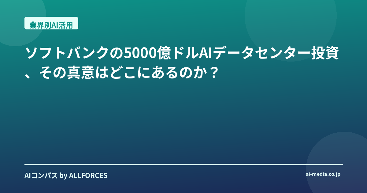 ソフトバンクの5000億ドルAIデータセンター投資、その真意はどこにあるのか? 正直、このニュースを聞いた時、私も思わず二度見してしまいましたよ。「5000億ドル?!」ってね。あなたも感じているかもしれませんが、この数字のインパクトは尋常じゃない。AI業界を20年近く見てきた私でも、これほど大規模なインフラ投資計画はそうそう記憶にありません。まるで、インターネット黎明期のインフラ整備を、たった数年で一気にやろうとしているような、そんな壮大なスケール感です。 考えてみてください。今、世界中で「生成AI」や「大規模言語モデル(LLM)」が爆発的に普及していますよね。ChatGPTのようなサービスが私たちの日常に浸透し、企業もこぞってAI導入を進めている。でも、その裏側で何が起きているか、ご存知ですか?そう、膨大な計算能力、つまりGPUパワーが文字通り「喉から手が出るほど」必要とされているんです。NVIDIAのGPUが飛ぶように売れ、その供給が追いつかない状況は、まさにこの需要の表れ。ソフトバンクグループが今回発表した「Stargate」プロジェクトへの最大5000億ドルという巨額投資は、まさにこのAIインフラのボトルネックを一気に解消しようという、彼らなりの「次の産業革命」への賭けだと私は見ています。 このStargateプロジェクト、ただのデータセンター建設ではないんですよ。OpenAI、そしてOracleという、AIとクラウドの最前線を走る企業との共同推進という点が非常に重要です。OpenAIは、GPTシリーズに代表される最先端のAIモデルを開発し、その計算需要は計り知れません。一方、Oracleは、そのクラウドインフラ「Oracle Cloud Infrastructure (OCI)」で、高性能なAIワークロードを支える実績があります。彼らが手を組むことで、単なるハードウェアの提供に留まらず、AIモデルの開発から運用までを一貫してサポートする、まさに「AIファクトリー」のようなエコシステムを構築しようとしているわけです。 具体的に見ていきましょう。この計画では、米国に5つの新たなAIデータセンター拠点を設立し、2025年末までに合計10ギガワットの計算能力を目指すとのこと。すでに約7ギガワットの容量が確保される見込みで、そのスピード感には驚かされます。ソフトバンクグループは、オハイオ州ローズタウンとテキサス州ミラム郡の2拠点の設立に関与し、特にテキサスでは傘下のSBエナジーが電力インフラを提供することで、迅速な展開を可能にしています。これは、単に資金を出すだけでなく、グループ全体のリソースを投入して、この巨大プロジェクトを推進する彼らの本気度を示していると言えるでしょう。 技術的な側面も非常に興味深いですよ。ソフトバンクは、国内のAI計算基盤拡張においても、最新のNVIDIA BlackwellアーキテクチャGPUを含むNVIDIAアクセラレーテッドコンピューティングを採用し、DGX B200システムを搭載したNVIDIA DGX SuperPODを世界で最も早く導入する企業の1つとなるそうです。これにより、AI計算基盤全体の計算処理能力は25エクサフロップスに達し、現在稼働しているAI計算基盤の約37倍にもなるというから、その性能向上はまさに桁違いです。 さらに、彼らはAIデータセンター向けの「次世代メモリー」開発にも約30億円を投資する計画を進めています。これは、AIの中心が学習から推論へとシフトする中で、GPUのパフォーマンスを最大化し、より大量のデータを効率的に処理するために高性能メモリーが不可欠になるという洞察に基づいています。ソフトバンクがメモリーメーカーになるのではなく、IP(知的財産)事業を想定しているという点も、彼らの戦略的な視点を感じさせますね。 この大規模投資が市場に与える影響は計り知れません。まず、NVIDIAのようなGPUメーカーにとっては、さらなる需要拡大の追い風となるでしょう。Oracleのようなクラウドプロバイダーも、AIインフラ市場での存在感を一層高めることになります。そして、何よりも、AIモデルを開発するスタートアップや企業にとっては、これまで以上に高性能な計算リソースが利用しやすくなるという恩恵があります。これは、AI技術の進化をさらに加速させることにつながるはずです。 もちろん、これほどの巨額投資にはリスクも伴います。AI技術の進化は速く、今日の最先端が明日には陳腐化する可能性もゼロではありません。また、データセンターの建設には莫大な電力が必要であり、持続可能性や環境への配慮も重要な課題となります。しかし、ソフトバンクは、この投資によって米国内で2万5000人以上の直接雇用と、数万人規模の関連雇用を創出し、地域経済の活性化にも貢献すると見込んでいます。オハイオ州ローズタウンの拠点では、かつて自動車工場があった跡地を活用するという話も、単なる経済効果だけでなく、社会的な意義も感じさせますね。 個人的には、この壮大な賭けがAIの未来をどう塗り替えるのか、見守るのが楽しみでなりません。AIが本当に「次の産業革命」の主役となるのか、そしてソ