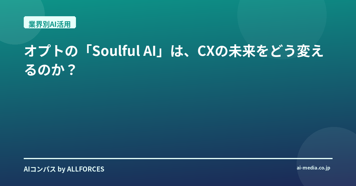 「Soulful AI」――この言葉を聞いて、あなたも少し立ち止まったのではないでしょうか?正直なところ、私も最初は「また新しいバズワードか」と、少し懐疑的な目を向けました。AI業界に20年も身を置いていると、耳当たりの良いネーミングの裏に、大した技術的進歩がないケースを山ほど見てきましたからね。しかし、オプトが今回発表したCX(顧客体験)向けソリューション「Soulful AI™」は、その名前に込められた真意を探る価値がありそうです。
