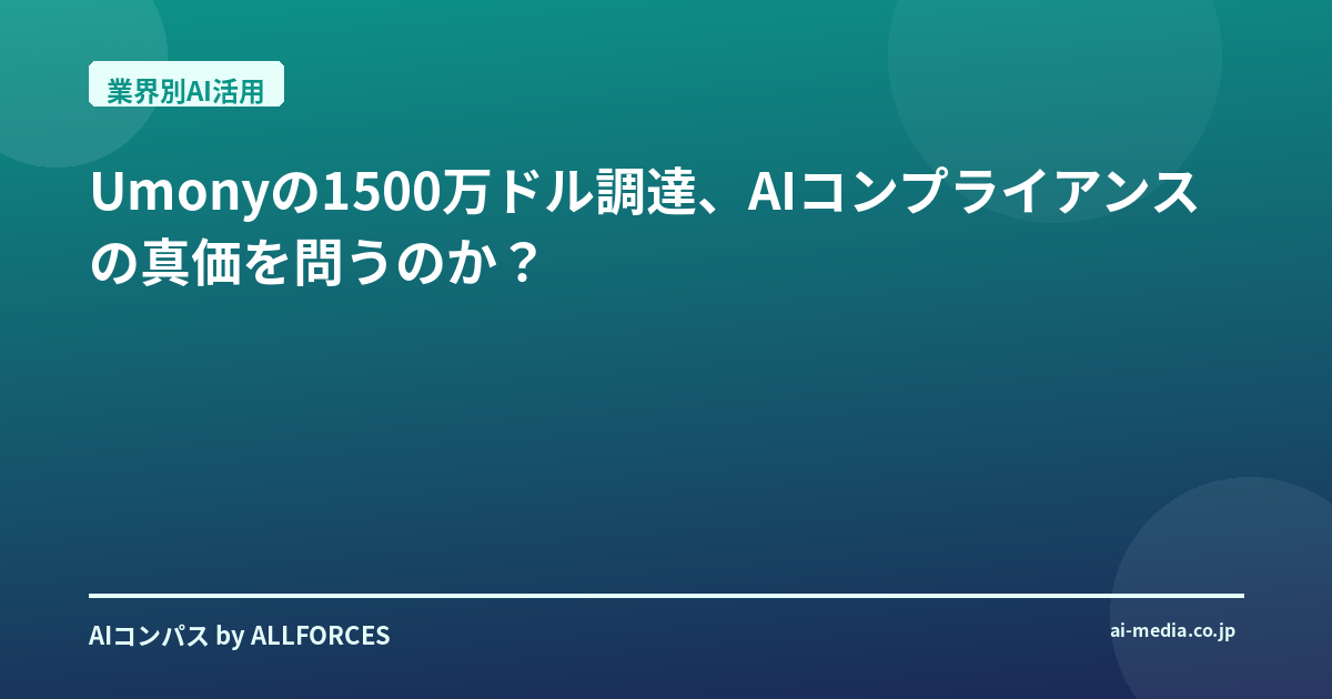 UmonyがAIコンプライアンスで1500万ドルを調達したというニュース、あなたも目にしましたか?正直なところ、最初にこの見出しを見た時、「また新しいAIスタートアップが資金調達か」と、少しばかり斜に構えてしまったんですよ。この20年間、シリコンバレーから日本の大手企業まで、数えきれないほどのAIプロジェクトを見てきましたからね。新しい技術がもたらす熱狂と、その後に続く現実の壁を、嫌というほど経験してきました。しかし、今回のUmonyの動きは、単なるバズワードに乗っかった資金調達とは一線を画す、ある種の「必然」を感じさせるものかもしれません。