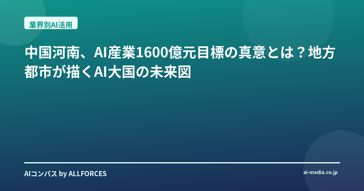中国河南、AI産業1600億元目標の真意とは?地方都市が描くAI大国の未来図