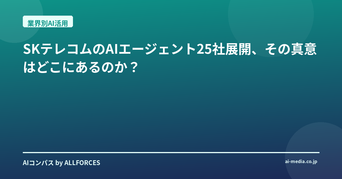 SKテレコムの挑戦は、AIエージェントが単なるツールではなく、私たちの働き方、ひいては生活そのものを変える可能性を秘めていることを改めて教えてくれます。彼らが目指す「1人1エージェント」の世界は、本当に実現するのでしょうか? そして、その時、私たちの仕事や日常は、今とはどう変わっているのでしょうね。個人的には、この動きが、AIが真に「使える」ものとして社会に浸透していくための、重要な一歩になることを期待しています。