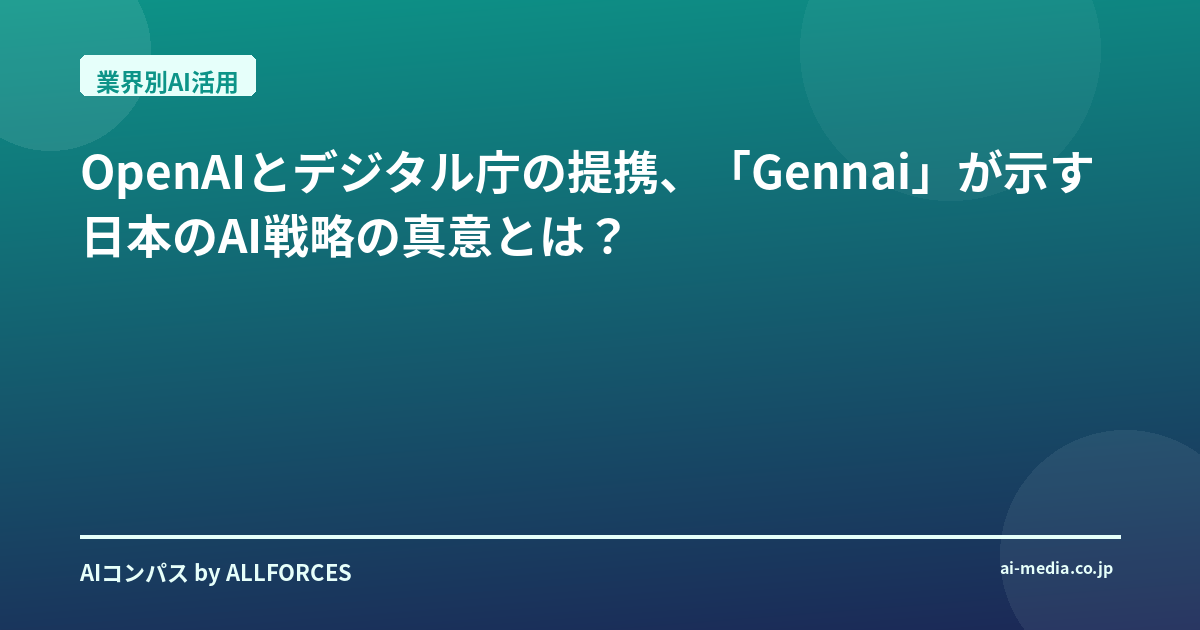 OpenAIとデジタル庁の提携、「Gennai」が示す日本のAI戦略の真意とは? いやはや、皆さん、最近のAI業界の動きには本当に目を見張るものがありますね。特に、OpenAIが日本のデジタル庁と手を組み、「Gennai(源内)」というAIツールを提供し始めたというニュース、あなたも耳にしましたか?正直なところ、私も最初は「また政府がAI導入か」と、少し斜に構えて見ていたんですよ。何しろ、この20年間、シリコンバレーのスタートアップから日本の大企業まで、数えきれないほどのAIプロジェクトを見てきましたからね。鳴り物入りで始まったものの、結局は形だけ、なんてケースも少なくありませんでしたから。 でもね、今回の「Gennai」は、どうも一筋縄ではいかないようです。デジタル庁が単に業務効率化を目指しているだけではない、もっと深い戦略がそこには隠されているんじゃないかと、私は感じています。考えてみてください、政府機関が最先端のAI技術をこれほど積極的に、しかもマルチベンダーで導入するというのは、過去の経験から見ても異例中の異例ですよ。 この提携の核心は、単にOpenAIの技術を導入する、という話に留まりません。デジタル庁は、OpenAIのモデルだけでなく、AWSのNova Lite、AnthropicのClaude 3 Haiku、そしてClaude 3.5 Sonnetといった、複数のトップティアのAIモデルを「Gennai」というプラットフォーム上で利用できるマルチベンダー環境を構築しているんです。これは何を意味するかというと、特定のベンダーに依存せず、業務内容に応じて最適なAIを使い分けられる柔軟性を持たせている、ということ。これは賢い選択ですよ。AI技術の進化は目覚ましく、今日のベストが明日もベストとは限りませんからね。このアプローチは、将来的な技術の陳腐化リスクを軽減し、常に最先端のAIを活用できる体制を整えていると言えるでしょう。 実際に、その効果は数字にも表れています。デジタル庁の職員約1,200人のうち、3ヶ月間で約950人が「Gennai」を利用し、延べ利用回数は6万5,000回以上、一人あたり平均70回も使われているというから驚きです。しかも、利用者の約8割が業務効率化に貢献していると回答し、満足度も5点満点中平均4.2点。これは、単なるお試し導入ではなく、現場でしっかりと活用されている証拠です。議事録作成の時短、翻訳や校正の効率化、法令調査の迅速化といった具体的な成果が上がっていると聞けば、私も「なるほど」と唸ってしまいます。 「Gennai」で最も利用されているのはチャット型AIですが、文章生成、要約、校正、画像生成、翻訳といった汎用アプリも頻繁に使われているようです。さらに興味深いのは、国会答弁検索AIや法制度調査支援AIといった、行政に特