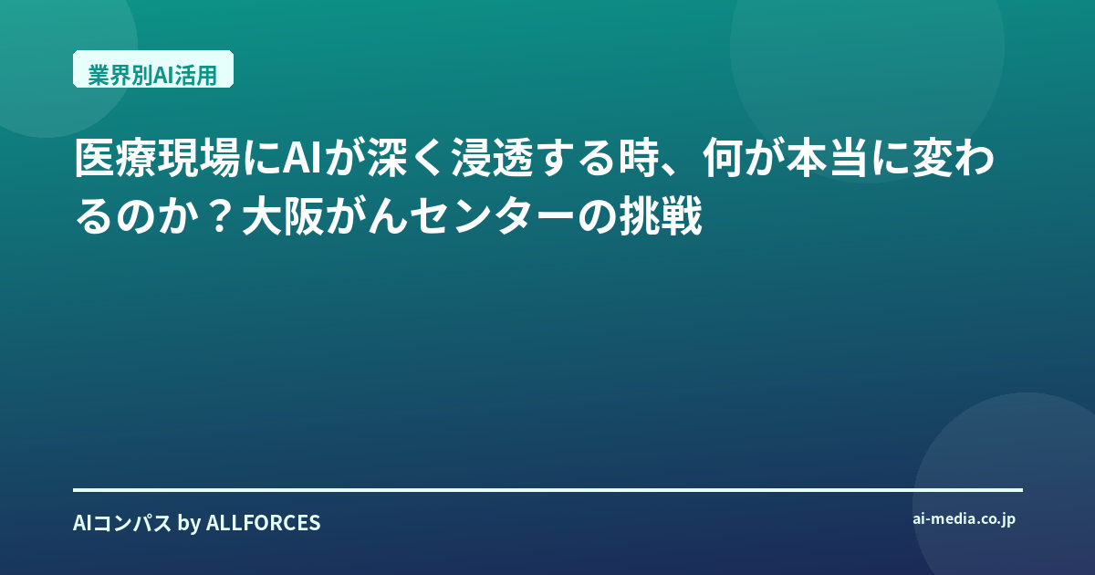 医療現場にAIが深く浸透する時、何が本当に変わるのか?大阪がんセンターの挑戦