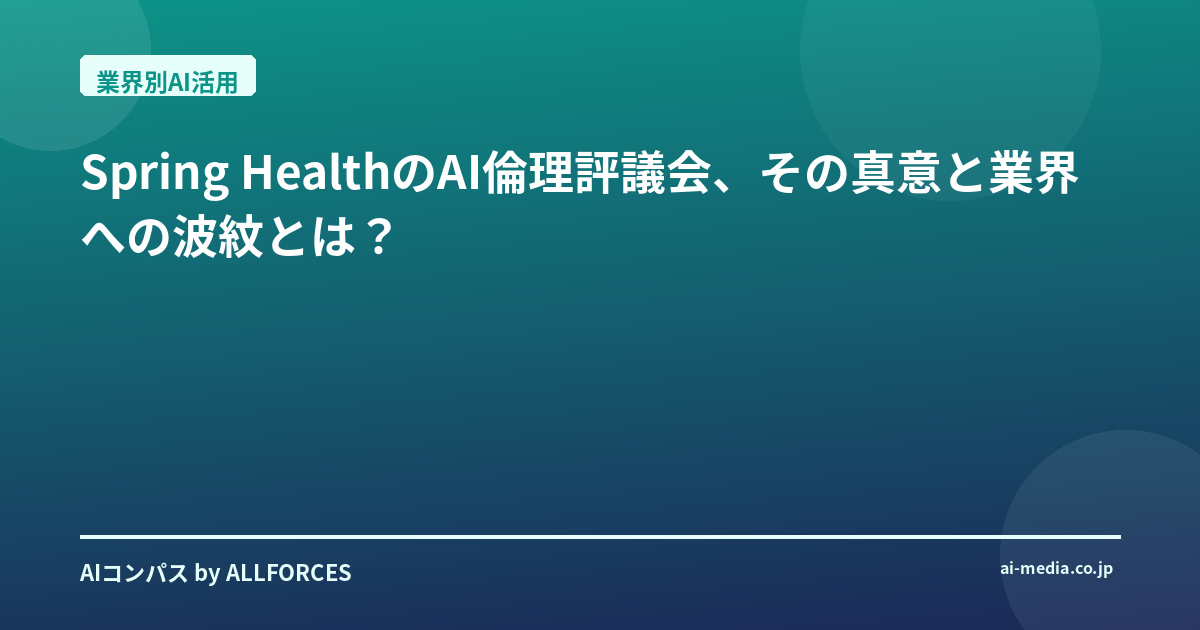 Spring HealthのAI倫理評議会、その真意と業界への波紋とは? Spring HealthがAI倫理評議会を設立したと聞いて、正直なところ、あなたはどう感じましたか? 私がこの業界に入った20年前、AI倫理なんて言葉はSFの世界の話でしたよ。当時は「AIが賢くなればなるほど、人間は楽になる」という単純な期待が先行していて、まさかその「賢さ」が新たな倫理的課題を生むとは、ほとんどの人が想像していなかったでしょうね。でも、今やAIは私たちの生活のあらゆる側面に深く浸透し、特にSpring Healthのように精神医療という極めてデリケートな分野で活用されるとなると、その責任は計り知れません。 あなたも感じているかもしれませんが、近年、AIの公平性、透明性、説明責任といったテーマは、単なる学術的な議論を超え、ビジネスの最重要課題の1つになっています。GoogleのResponsible AI原則やMicrosoftのAETHER委員会、IBMのAI Ethics Boardといった大手企業の取り組みを見ても、この流れは明らかです。しかし、Spring Healthが今回発表した「AI倫理評議会」は、単に大企業の模倣に終わらない、彼らならではの深い意味合いを持っているように私には思えるのです。2025年4月24日に設立が発表されたこの評議会は、精神衛生、倫理、テクノロジーの分野