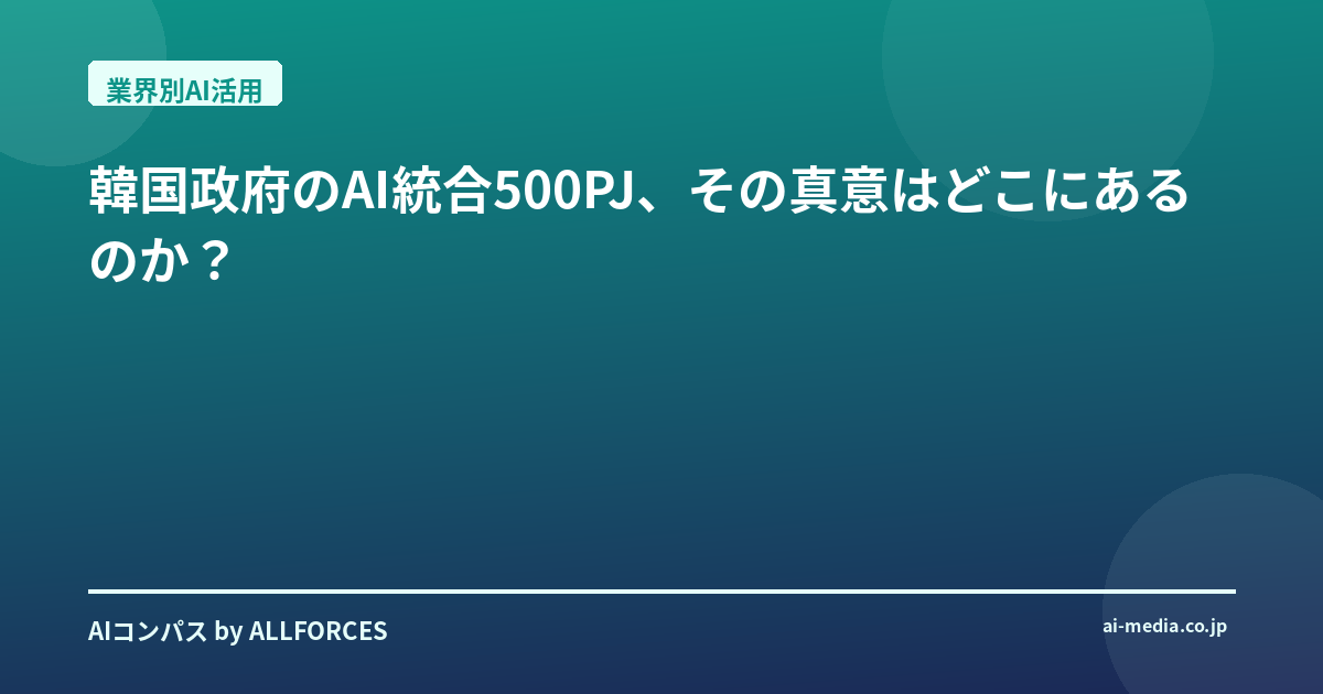 韓国の「AI統合500PJ」は、私たちに強烈なメッセージを投げかけています。それは、AIが国家の