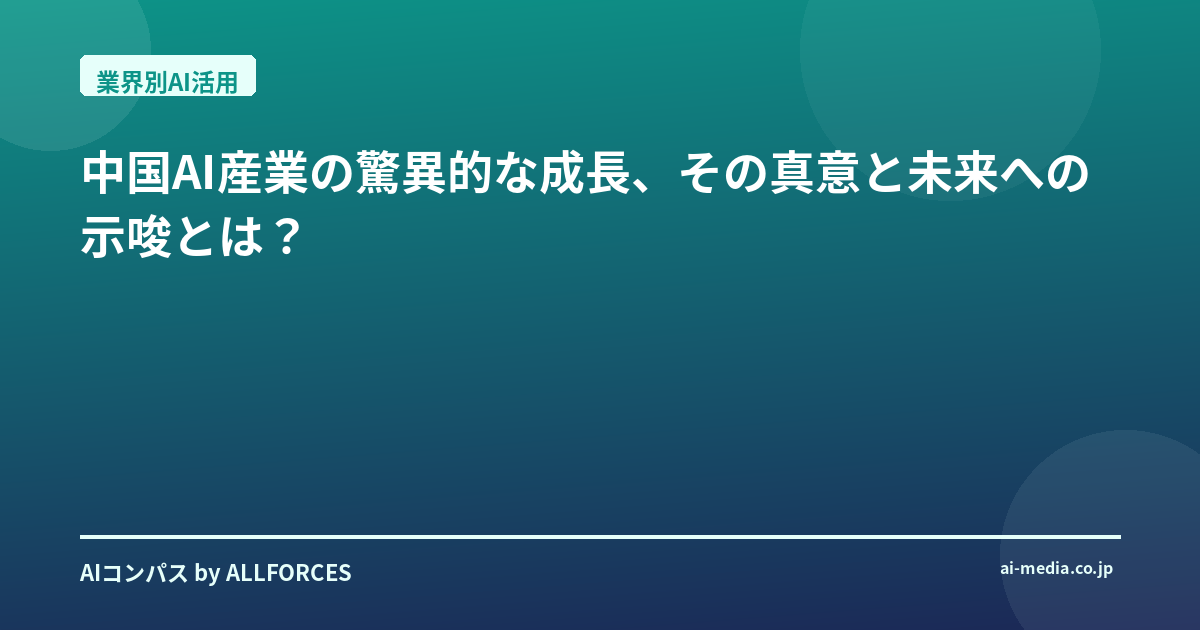 中国AI産業の驚異的な成長、その真意と未来への示唆とは? おいおい、また中国か!というのが、正直なところ、この数字を見た時の私の最初の印象でしたね。5300社を超えるAI企業がひしめき合い、その市場規模が9000億元に迫る勢いだと聞けば、20年間この業界を見てきた私でも、思わず唸ってしまいます。あなたも感じているかもしれませんが、この数字の裏には一体何が隠されていると思いますか?単なるバブルなのか、それとも本質的な変革の兆しなのか。 私がシリコンバレーのスタートアップから日本の大企業まで、数百社のAI導入を間近で見てきた中で、何度か「AIブーム」というものに遭遇してきました。最初はニューラルネットワークの再燃、次にディープラーニングの衝撃。正直、そのたびに「本当に今回は違うのか?」と懐疑的な目を向けてきたものです。しかし、今回の中国の動きは、過去のそれとは少し様相が違うように感じています。政府の強力な国家戦略としての後押し、そして何よりも巨大な国内市場という「実需」が、この成長を支えている。これは、単なる技術の流行り廃りでは片付けられない、もっと根深い変化の予兆かもしれません。 具体的に見ていきましょう。2023年末にはAIコア産業の規模が5,784億元(約12兆円)に達し、2024年にはAI産業全体で7,000億元(約14兆円)を突破する見込みだというから驚きです。さらに2025年には、中国全体のAI市場規模が6兆元(約120兆円)を超えるという予測まで出ています。この数字のスケール感、ちょっと想像を超えていますよね。 この巨大な市場を牽引しているのは、もちろんBATHと呼ばれる大手テクノロジー企業、Baidu(百度)、Alibaba(アリババ)、Tencent(テンセント)、Huawei(ファーウェイ)です。彼らは大規模な投資と研究開発で、AIのインフラを築き上げています。BaiduのERNIE BotやAlibabaのTongyi Qianwenといった大規模言語モデル(LLM)は、すでにチャットサービスや金融、コンテンツ生成など、多岐にわたる分野で実用化が進んでいます。 しかし、それだけではありません。中国AIのダイナミズムは、スタートアップの活況にも見て取れます。顔認証技術で世界をリードするSenseTime(商湯科技)、AI向け半導体メーカーとして胡潤中国人工知能(AI)企業上位50社で首位に輝いたCambricon(中科寒武紀科技)、音声認識技術のiFlytek(科大訊飛)といったユニコーン企業は、すでに世界的な存在感を放っています。最近では、DeepSeek(深度求索)のような大規模言語モデルで注目を集める新興勢力や、Zhipu AI(智譜AI)、MiniMax(稀宇科技)、Baichuan AI(百川智能)といった「AI六小虎」と呼ばれる企業群が、次々と革新的なサービスを生み出している。彼らのスピード感と、技術をすぐに社会実装しようとする貪欲さには、本当に目を見張るものがあります。 投資の面でも、中国政府は総額600億元(約1.26兆円)もの国家AI産業投資ファンドを設立し、基礎技術の国産化を強く推進しています。特に生成AI(AIGC)への投資は急速に拡大しており、2027年にはAI市場全体の投資の33.0%を占め、投資額は130億ドル(約2兆円)を超えると予想されています。AIGCの市場規模も2028年には2,767.4億元に達する見込みで、この分野が今後の成長の大きなドライバーになることは間違いありません。 技術トレンドで特に注目すべきは、「身体性AI(Embodied AI)」の発展です。AIを物理世界に活用できるロボット産業が急速に発展し、AIとロボットを融合させるこの分野に75%以上の企業が参入しています。一部企業の技術力は米国と肩を並べるほどに成長しているというから、これは単なるソフトウェアの進化に留まらない、より広範な産業構造の変化を示唆しているように感じます。金融、医療、教育、製造、エネルギーといった業界特化型AIモデルの開発も進んでおり、まさに「AIが社会の隅々まで浸透していく」という未来が、中国ではすでに現実のものとなりつつあるのです。 そして、計算力。AI用計算能力が788エクサフロップス(EFLOPS)に上り、計算力インフラの規模とレベルが世界トップクラスだという事実。さらに、AI関連の特許出願数が2024年時点で約72,000件を超え、米国や日本を大きく上回っているというデータは、中国が単なる「ものまね」ではなく、独自の技術革新を推し進めている証拠でしょう。 投資家として、あるいは技術者として、この中国AIの巨大な波をどう捉えるべきでしょうか。正直なところ、この勢いがどこまで続くのか、私にもまだ見えない部分もあります。しかし、これだけの規模とスピードで進化する市場を無視することは、もはや賢明な選択とは言えません。中国の技術動向を深く理解し、その中で自社の強みをどう活かすか、あるいは新たな機会をどう見出すか。これは、私たち全員が真剣に考えるべき課題です。 あなたなら、この中国AIの巨大なうねりを、どう読み解き、どう行動しますか? 「あなたなら、この中国AIの巨大なうねりを、どう読み解き、どう行動しますか?」 この問いかけに対し、私自身の考えを率