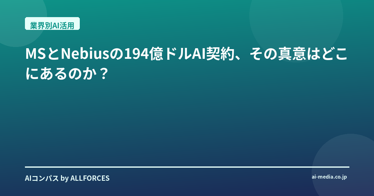 MSとNebiusの194億ドルAI契約、その真意はどこにあるのか? 「MS、Nebiusと194億ドルAI契約」――このヘッドラインを見たとき、正直なところ、私も一瞬目を疑いましたよ。194億ドル、しかもAIコンピューティングパワーの確保のため、ですか。あなたも感じているかもしれませんが、この数字のインパクトは尋常ではありませんよね。これは単なる大規模な契約というだけでなく、AI業界の未来を形作る、ある種の「宣言」のように私には思えるんです。 私がこの業界に足を踏み入れて20年。シリコンバレーのガレージから生まれたスタートアップが世界を変える瞬間も、日本の大企業がAI導入に苦戦する姿も、数えきれないほど見てきました。その中で、これほど巨額の投資が、特定のAIインフラプロバイダーに向けられるケースは、そう多くはありません。かつては自社で全てを抱え込もうとした大手企業が、今や外部の専門性とスピードを求めている。この変化の背景には、一体何があるのでしょうか? 今回の契約の核心は、MicrosoftがNebius Group NVから今後5年間で最大194億ドル相当のAIコンピューティングパワーを確保するという点にあります。初期契約は174億ドルで、追加オプションを行使すれば194億ドルに達するとのこと。この規模感、そして期間の長さは、Microsoftが自社のAIプロジェクト、そして「Copilot」のような消費者向けAIアシスタントの強化に、いかに本気であるかを示しています。 Nebius Group NVという会社、聞き慣れない方もいるかもしれませんね。彼らはアムステルダムを拠点とする「ネオクラウド」プロバイダーで、特にGPUを搭載したクラウドインフラに特化しています。実は、2023年にYandexの国際事業からスピンオフした企業なんです。Yandexといえば、ロシアのテックジャイアント。その技術的DNAを受け継ぎつつ、グローバル市場で独自の道を切り開いているわけです。彼らがVineland, New Jerseyに建設中のデータセンターからサービスを提供するというのも、興味深い点です。 技術的な側面から見ると、この契約の肝は「Nvidia GB300チップ」にあります。Microsoftは、この最新鋭のNvidia GB300チップを10万個以上利用できる権利を得るというのですから、これはもう、AIモデルのトレーニングとデプロイメントにおける最先端を走るための、まさに「兵器」を手に入れたに等しい。ご存知の通り、現在のAI開発はGPUの性能に大きく依存しています。特に大規模言語モデル(LLM)やマルチモーダルAIの進化には、膨大な計算能力が不可欠です。 正直なところ、私自身、新しいチップが登場するたびに「本当にそこまで必要なのか?」と懐疑的になることもありました。しかし、現実のAI進化のスピードは、常に私の想像を超えてきましたね。この契約は、まさにその「AIインフラのボトルネック」を解消しようとするMicrosoftの強い意志の表れでしょう。世界的にデータセンターの容量、特にAIトレーニングに必要なGPUインフラが不足している中で、このような大規模な事前契約は、将来の競争優位性を確保するための賢明な一手と言えます。MicrosoftはすでにCoreWeave、Nscale、Lambdaといった他のネオクラウドプロバイダーにも総額330億ドル以上をコミットしており、今回のNebiusとの契約もその壮大なAIインフラ戦略の一環なんです。 では、この動きは私たち投資家や技術者にとって何を意味するのでしょうか? 投資家の皆さん、注目すべきは、このような「ネオクラウド」と呼ばれる専門性の高いインフラプロバイダーの台頭です。彼らは単なるクラウドベンダーではなく、AIに特化した高性能なコンピューティングリソースを提供することで、大手クラウドプロバイダーの隙間を埋め、あるいは補完する存在になっています。今後も、特定の技術スタックや業界に特化したインフラ企業への投資が加速する可能性は十分にあります。彼らの技術力、データセンター戦略、そして大手テック企業との提携関係を注意深く見ていくべきでしょう。 そして技術者の皆さん、これはAIインフラの最適化が、これまで以上に重要になることを示唆しています。Nvidia GB300のような最新チップの性能を最大限に引き出すための分散学習技術、効率的なモデルデプロイメント、そしてコストとパフォーマンスのバランスをどう取るか。これらのスキルは、これからのAI開発において、ますます価値を持つようになります。単にモデルを構築するだけでなく、そのモデルを動かす「足回り」を理解し、最適化できるエンジニアが求められる時代が、もう目の前に来ています。 今回のMicrosoftとNebiusの契約は、AI業界が新たなフェーズに入ったことを明確に示しています。それは、AIモデルの競争だけでなく、それを支えるインフラの競争が激化する時代です。この巨大な投資が、今後どのような革新を生み出すのか、そして私たちの生活をどう変えていくのか、本当に楽しみですね。あなたはこの動きをどう見ていますか? さて、あなたはこの動きをどう見ていますか? 私個人とし