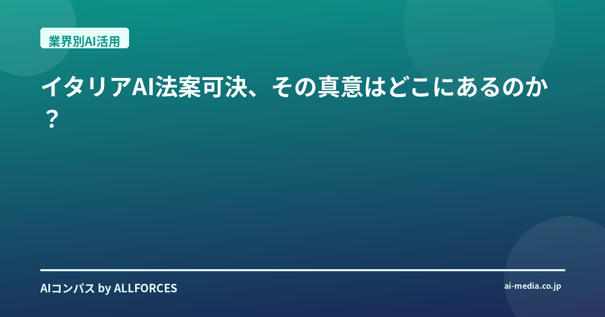 あなたなら、このイタリアの動きをどう読み解き、次の手を打ちますか? 私の見解を率直に言わせてもらうと、このイタリアの動きは、単に「規制が強化されたから、それに従わなければならない」という受動的なものとして捉えるべきではありません。むしろ、これは「信頼できるAI」という新たな価値基準が、これからのビジネスにおいて決定的な競争優位性を生み出す時代の幕開けを告げていると見ています。 考えてみてください。消費者は、自分が使うサービスや製品の背後にあるAIが、どのように学習し、どのように意思決定しているのかについて、ますます関心を持つようになります。企業は、AIの倫理的な側面や透明性について説明責任を果たすことを求められるでしょう。そして、投資家は、単なる技術力だけでなく、そのAIが社会的に受容され、持続可能な形で運用されるかどうかも、投資判断の重要な要素とするはずです。 ### 「信頼できるAI」がもたらす新たなビジネス価値 イタリアの法案が提示する「人間主体」「透明性」「安全」という原則は、EU AI法が目指す「信頼できるAI」の核心です。これを単なる法的義務と捉えるのではなく、企業価値を高める戦略的な機会と捉えることが、これからのAI時代を生き抜く鍵になります。 例えば、医療分野で考えてみましょう。AIが診断支援を行う際、そのアルゴリズムがどのように特定の結論に至ったのかを医師が理解できなければ、患者への説明も、最終的な判断を下す上での信頼性も揺らぎます。トレーサビリティを確保し、AIの「思考プロセス」を可視化できる技術(説明可能なAI、XAIなど)は、単なる規制遵守を超えて、医療現場におけるAIの受容度と活用度を劇的に高めるでしょう。これは、XAI技術を提供する企業にとって、計り知れないビジネスチャンスです。 また、金融分野におけるAI審査や、人事におけるAI採用でも同様です。特定の属性に対する偏見(バイアス)が含まれていないか、その判断基準は透明か、もし誤った判断が下された場合に人間が介入できる仕組みはあるか。これらの問いに明確に答えられるAIシステムは、顧客からの信頼だけでなく、社会全体からの信頼を勝ち取ることができます。そして、この「信頼」こそが、ブランド価値の向上、市場での差別化、ひいては新たな顧客獲得に繋がるのです。 正直なところ、これまで多くの企業がAI導入に際して「効率化」や「コスト削減」を最優先事項としてきました。しかし、これからは「信頼性」や「倫理」という軸が、それらに並ぶ、あるいはそれらを超える重要性を持つようになるでしょう。 ### 企業が今、具体的に取るべき「次の手」 では、この新たな潮流の中で、企業は具体的にどのような手を打つべきでしょうか。私は大きく分けて、ガバナンス体制の構築と技術的対応、そして文化変革の3つの柱で考えるべきだと提言します。 1. ガバナンス体制の構築: まず、社内にAI倫理委員会やAIガバナンス部門を設置し、AI戦略の策定から導入、運用、監視に至るまでの全ライフサイクルにおいて、倫理的・法的側面を評価・管理する体制を整えるべきです。チーフAIオフィサー(CAIO)のような役職を設け、全社的なAI戦略と倫理的ガイドラインを統合的に推進するリーダーシップを置くことも有効です。 特に、AIシステムのサプライチェーン全体における責任を明確にすることも重要です。AIモデルや学習データ、基盤となるクラウドサービスなど、外部ベンダーから調達するAIコンポーネントについても、その透明性や倫理的側面を評価する厳格な基準を設ける必要があります。単に機能やコストだけでなく、「信頼性」という新たな評価軸でベンダーを選定する時代が来たのです。 2. 技術的対応: 技術者として注目すべきは、規制遵守を支援し、さらに一歩進んだ「信頼できるAI」を構築するための具体的な技術です。 * 説明可能なAI (XAI): AIの意思決定プロセスを人間が理解できる形で可視化する技術は、透明性の確保に不可欠です。モデルの解釈性向上は、規制当局への説明だけでなく、開発者自身がAIの挙動を理解し、改善する上でも役立ちます。 * プライバシー保護技術 (PETs): 差分プライバシー、準同型暗号、セキュアマルチパーティ計算(SMC)などは、個人情報を保護しつつAIを学習・運用するための重要な技術です。特に14歳未満の子供のデータ保護が義務付けられる中、これらの技術は必須となるでしょう。フェデレーテッドラーニングのように、データを一箇所に集めることなく分散型で学習を進めるアプローチも、プライバシー保護とデータ活用を両立させる上で有効です。 * データガバナンスとバイアス検出: AIの学習データに含まれる偏りは、不公平な結果を生み出す最大の原因です。データの収集、アノテーション、利用における透明性を高め、定期的にバイアスを検出・是正する仕組みを導入することが求められます。データの来歴を追跡できるトレーサビリティ技術も、ここで