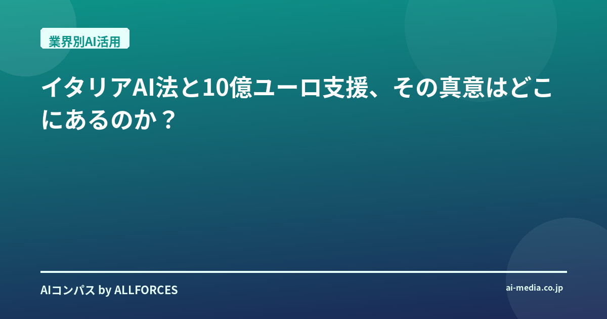 イタリアAI法と10億ユーロ支援、その真意はどこにあるのか?