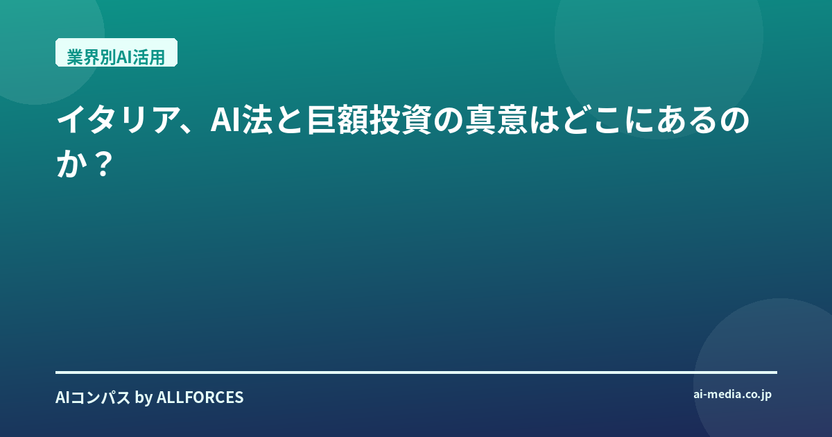 イタリア、AI法と巨額投資の真意はどこにあるのか? 正直なところ、イタリアがこれほど早く、そして大規模にAIの法整備と投資に乗り出すとは、私自身も少し驚いています。あなたも感じているかもしれませんが、EUのAI法がようやく形になりつつある中で、一国がここまで具体的に動くのは、まさに「本気」の表れですよね。20年間この業界を見てきましたが、法規制と大規模投資がこれほど密接に、かつ迅速に連動するケースはそう多くありませんでした。 今回の動きは、単なる規制強化に留まらない、イタリアの国家戦略の転換点だと見ています。EUが定めた包括的なAI規制、通称「EU AI Act」に整合する形で、イタリアが国内法を成立させたのは、実はEU加盟国で初めてのこと。これは、AI技術の健全な発展を促しつつ、同時にそのリスクを管理しようという強い意志の表れです。そして、それに伴う10億ユーロ規模の投資は、彼らがこの分野で主導権を握ろうとしている明確なシグナルだと捉えるべきでしょう。 では、具体的に何が変わるのでしょうか?イタリアのAI法は、「人間主体」「透明性」「安全」を基本原則に掲げています。これは、AIが社会に深く浸透する中で、人間が常にコントロールを保ち、その意思決定プロセスが明確で、かつ安全性が確保されるべきだという、極めて重要な視点です。特に注目すべきは、医療、労働、行政、司法、教育、スポーツといった幅広い分野が規制対象となり、AIによる意思決定には必ず人間監督義務が課される点です。これは、AIが自律的に判断を下すことによる潜在的なリスクを最小限に抑えようとする、慎重かつ現実的なアプローチと言えるでしょう。 さらに、トレーサビリティの確保や、責任の所在が人間であることの明確化は、AIが引き起こす問題に対する法的責任を明確にする上で不可欠です。個人的には、この「責任の明確化」こそが、AI技術の社会実装を加速させる上で最も重要な要素の1つだと考えています。また、未成年者の利用制限として14歳未満のAI利用に保護者の同意を義務付ける点や、ディープフェイクの違法な拡散やAIを用いた詐欺に対する刑事罰(1~5年の懲役刑など)の導入は、AIが悪用されることへの強い牽制となります。一方で、AIが補助的に生成した作品でも、人間の知的努力の結果であれば著作権が認められるという条項は、クリエイターにとって朗報と言えるでしょう。これらの規制を監督するのは国家サイバーセキュリティ庁(ACN)で、イタリアデジタル庁(AgID)が関係省庁間の調整役を担うことになります。 そして、投資の話です。イタリア政府は、AIだけでなく、サイバーセキュリティ、量子コンピューティング、Web3、オープンアーキテクチャといった新興の基盤技術の発展を支援するために、最大10億ユーロの補助金政策を打ち出しました。この投資は、国営融資機関カッサ・デポジティ・エ・プレスティティ(CDP)のベンチャーキャピタル部門が主導し、今後5年間でAIおよびサイバーセキュリティ分野に集中投下される予定です。さらに、民間部門から20億ユーロを調達する可能性もあるというから、その本気度が伺えます。主な対象はイタリアに拠点を置くスタートアップや中小企業ですが、国内の技術力を牽引する大企業も一部支援の対象に含まれるとのこと。これは、単に技術を導入するだけでなく、自国で技術を「生み出す」エコシステムを構築しようという意図が見えますね。 市場の動きも活発です。ミラノ工科大学の調査によれば、2024年のイタリアのAI市場規模は12億ユーロに達し、前年比58%増と急拡大しています。これは、今回の法整備と投資が、すでに動き出している市場の勢いをさらに加速させる可能性を示唆しています。また、テレコム・イタリアのエンタープライズ部門が、クラウド、エッジコンピューティング、サイバーセキュリティ、人工知能、5G、IoTサービスの拡大に焦点を当てた10億ユーロの投資計画を発表したことも、この国のデジタル変革への意欲を物語っています。 さらに興味深いのは、イタリアとアラブ首長国連邦(UAE)が提携し、イタリアにヨーロッパ最大のAIコンピューティングインフラを構築するAI拠点を設立する計画です。これは、アブダビのAIグループG42とイタリアの技術企業iGeniusが主導するというから、国際的な連携を通じて、一気にAIインフラの強化を図ろうとしているのがわかります。 しかし、課題がないわけではありません。2025年5月の調査では、イタリア企業のAI活用率はわずか8%に留まっており、デジタル技術導入の遅れが指摘されています。このギャップを埋めるには、法整備と投資だけでなく、企業文化の変革や人材育成が不可欠でしょう。投資家としては、この「ギャップ」こそが大きなビジネスチャンスになり得ると見ることもできます。技術者にとっては、新しい規制環境下での開発は挑戦的ですが、同時に「信頼できるAI」を構築する最前線で活躍できる機会でもあります。 イタリア