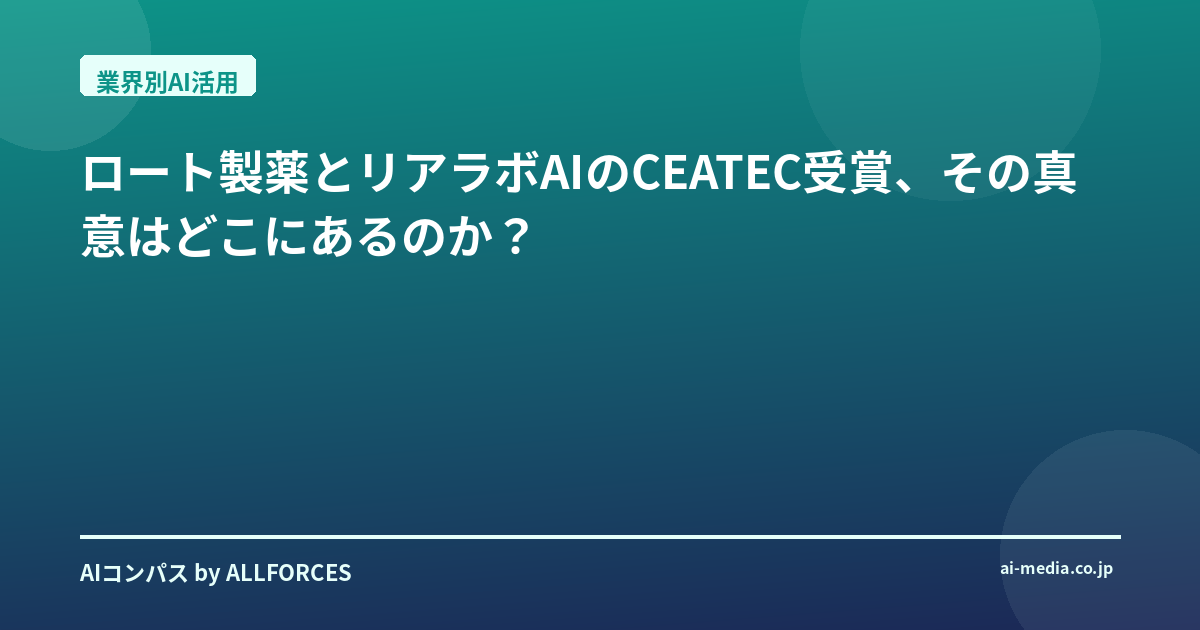 ロート製薬とリアラボAIのCEATEC受賞、その真意はどこにあるのか? おや、ロート製薬がCEATECで賞を獲ったって?正直なところ、最初にこのニュースを聞いた時、少し意外に感じた人もいるんじゃないかな。あなたもそう感じた一人ですか?医薬品や化粧品で知られるあのロート製薬が、最先端のテクノロジー見本市で「ネクストジェネレーション部門賞」を受賞したというのだから、これはただの話題作りではない、何か深い意味があるはずだと直感したんだ。 私がこの業界を20年近く見てきて、シリコンバレーのスタートアップから日本の大企業まで、本当に多くのAI導入プロジェクトを目の当たりにしてきました。その中で痛感するのは、伝統的な産業、特に研究開発の現場でAIを深く根付かせることの難しさです。75%以上の企業がPoC(概念実証)で終わってしまい、実際の業務にまで落とし込めないケースが後を絶たない。だからこそ、ロート製薬が株式会社フツパーと共同開発した「リアラボAI」が、CEATEC AWARD 2025で評価されたという事実は、単なる技術の進歩以上の、ある種の「突破口」を示しているように思えるんです。 この「リアラボAI」という名前、面白いでしょう?「Real+Labo+AI」を組み合わせた造語だそうで、その名の通り、研究室の現実(Real)にAIを深く統合しようという意図が感じられます。技術的な核心に迫ると、これはカーネギーメロン大学の金出武雄教授が監修したという統合型AIエージェントなんだ。金出教授の名前を聞けば、その技術的信頼性は折り紙付きだと、あなたも納得するはず。このAIは、自然言語での対話を通じて、標的探索から実験実行までを自律的に支援するというから驚きだ。具体的には、データ探索、解析、処方設計、さらには実験ロボットの制御までを自動的にこなせるというのだから、これはもう単なるツールではなく、研究者の強力な「相棒」と言えるでしょう。 考えてみてください。ヘルスケア、製薬、化粧品、化学、食品といった多岐にわたる分野で、このAIが応用可能だという。これは、これまで専門知識と経験が不可欠だった研究開発の参入障壁を劇的に下げ、開発サイクルを大幅に短縮する可能性を秘めている。特に、ロート製薬が掲げる「Connect for Well-being」というビジョンを考えると、このAIが単に効率化のためだけでなく、より良い製品を、より早く、より多くの人々に届けるための手段として位置づけられていることが分かります。 ロート製薬のAI戦略は、このリアラボAIだけに留まらない。彼らは生成AIを「ビジネス現場におけるイノベーション」と明確に捉え、企業活動のあらゆる分野での活用を積極的に推進しているんです。社内での生成AI開発はもちろん、プロンプトエンジニアリングワークショップを頻繁に開催し、社員一人ひとりのAIリテラシーを高めようとしている。これは、AIを一部の専門家だけのものにせず、全社的な文化として根付かせ