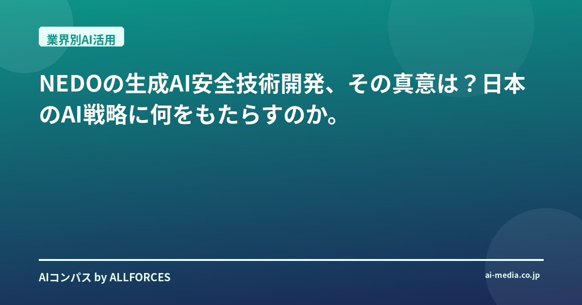 NEDOの生成AI安全技術開発、その真意は?日本のAI戦略に何をもたらすのか。