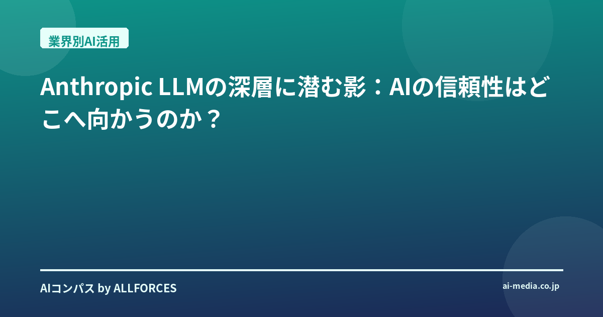 Anthropic LLMの深層に潜む影:AIの信頼性はどこへ向かうのか?