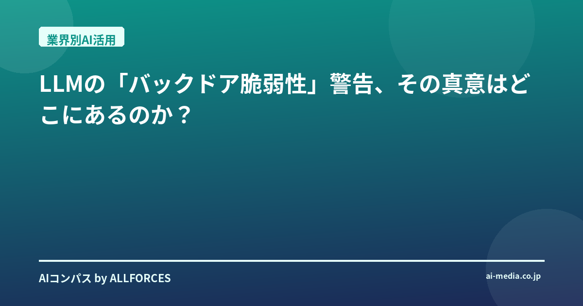 LLMの「バックドア脆弱性」警告、その真意はどこにあるのか?