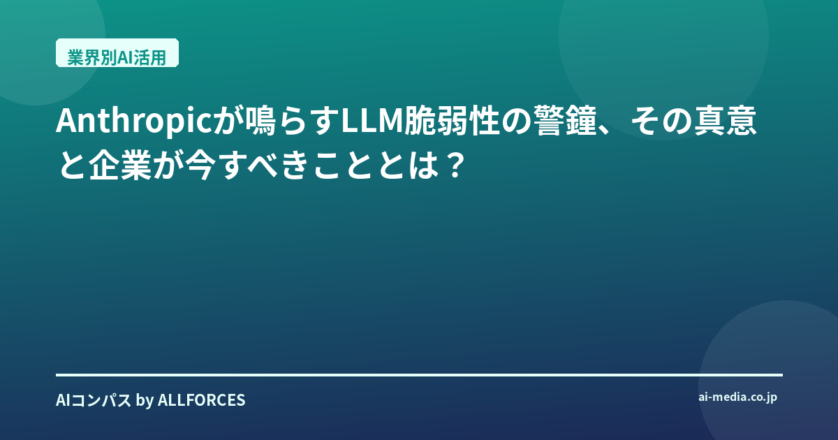 Anthropicが鳴らすLLM脆弱性の警鐘、その真意と企業が今すべきこととは?