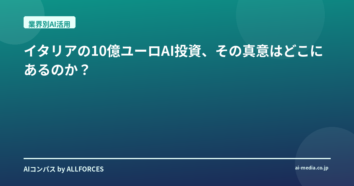 このイタリアの挑戦は、欧州がAI時代においてどのような立ち位置を築こうとしているのかを示す、重要な試金石となるでしょう。規制とイノベーションのバランスをどう取るのか、そして、この巨額の投資が真に持続可能なAIエコシステムを構築できるのか。あなたなら、このイタリアの動きをどう評価しますか?そして、あなたのビジネスや研究に、どのような影響を与えると見ていますか?