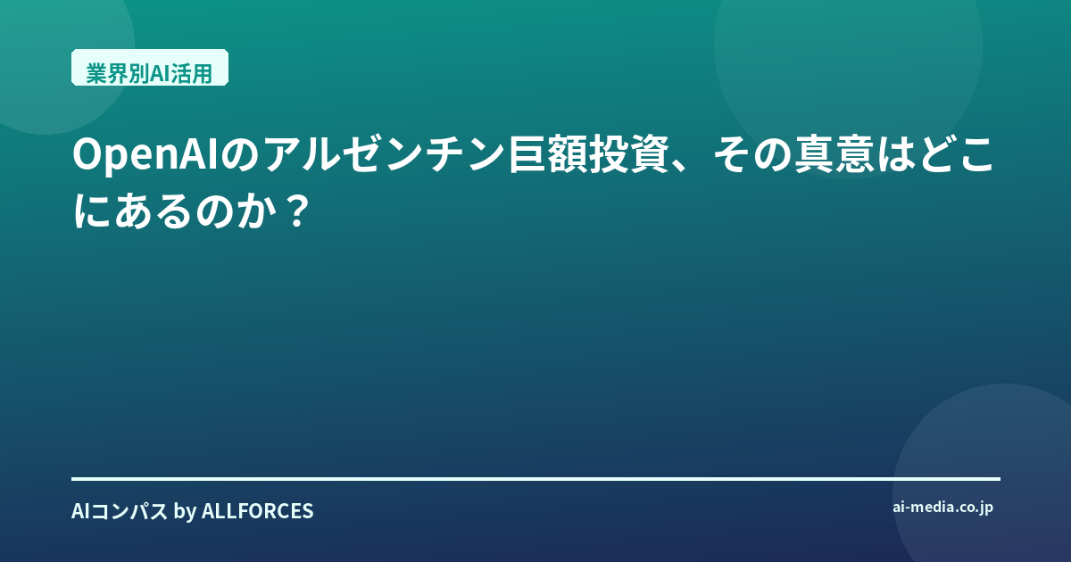 OpenAIのアルゼンチン巨額投資、その真意はどこにあるのか? 「OpenAIがアルゼンチンに250億ドル投資?」最初にこのニュースを聞いた時、正直なところ、私の耳を疑いました。250億ドルですよ?シリコンバレーで20年間、AI業界の浮き沈みを間近で見てきた私でも、この数字には驚きを隠せません。あなたもきっと、「なぜ今、アルゼンチンに、それほどの巨額を?」と感じたのではないでしょうか。これは単なる投資話ではない、何か大きな戦略が隠されているに違いないと直感しましたね。 考えてみれば、AIの進化は、まるでゴールドラッシュのようです。かつてはソフトウェアやアルゴリズムが主役でしたが、今やその基盤となる「インフラ」こそが、新たな金脈となっています。私が日本の大手企業でAI導入を支援していた頃、多くの経営者が「AIは魔法の杖だ」と期待を寄せていましたが、その裏で、膨大な計算資源と電力が必要になるという現実を理解している人は少なかった。データセンターの建設競争は、まさにその物理的な制約を乗り越えようとする、現代のフロンティア開拓なんです。 今回の投資の核心は、「Stargate Argentina」と名付けられた大規模なAIデータセンタープロジェクトにあります。OpenAIは、アルゼンチンのエネルギー企業Sur Energyと手を組み、パタゴニア地域に最大500メガワットという途方もない容量を持つ施設を建設しようとしている。500メガワットと言えば、中規模の都市1つを賄えるほどの電力です。これだけの規模のデータセンターを動かすには、安定した電力供給が不可欠。パタゴニアの豊富な再生可能エネルギー資源、特に風力や水力発電のポテンシャルが、この地を選んだ大きな理由の1つでしょう。そして、冷涼な気候は、発熱するサーバー群の冷却コストを抑える上でも有利に働きます。 しかし、それだけではありません。アルゼンチン政府が提供する「大規模投資インセンティブ制度(RIGI)」も、この巨額投資を後押ししているのは間違いありません。30年間の財政・関税優遇措置は、OpenAIのような企業にとって、長期的な事業展開を見据える上で非常に魅力的な条件です。政府がこれほど手厚い支援をするのは、アルゼンチンを「AIハブ」として確立し、AIコンピューティング能力を生成・輸出する、という国家戦略があるからでしょう。これは、かつて半導体工場が誘致されたように、AI時代における新たな産業誘致の形と言えます。 OpenAIのCEO、サム・アルトマン氏が「これはインフラ以上のものだ。アルゼンチン全土の人々の手にAIを届けることだ」と語っている点も、見逃せません。彼らは単に計算資源を確保するだけでなく、「OpenAI for Countries」というイニシアチブを通じて、アルゼンチン全土でOpenAIの技術へのアクセスを拡大しようとしています。まずは政府機関から導入を進め、公務員や研究機関がAIを活用して業務を効率化し、公共サービスを改善することを目指す。これは、AI技術の民主化という、彼らの掲げる大きなビジョンの一環であり、ラテンアメリカにおける初の「Stargate」プロジェクトとして、その成否は今後のグローバル展開にも大きな影響を与えるでしょう。 では、この動きは私たちに何を意味するのでしょうか?投資家の皆さん、これはAIインフラへの長期的な視点を持つべきだという明確なシグナルです。AIの「頭脳」であるモデル開発だけでなく、「体」となる計算資源への投資が、今後ますます重要になります。半導体、電力、冷却技術、そしてデータセンター建設に関わるあらゆる企業に、新たなビジネスチャンスが生まれるでしょう。ただし、地政学的なリスクや、新興国への大規模投資に伴う不確実性も考慮に入れる必要があります。 そして、技術者の皆さん。これは、AIが特定の先進国だけの技術ではなく、世界中でその恩恵が広がる可能性を示唆しています。アルゼンチンでのプロジェクトが成功すれば、同様のモデルが他の新興国にも展開されるかもしれません。そうなれば、新たな市場でのAI技術の適用、ローカライズ、そして現地の課題解決に貢献する機会が生まれます。同時に、AIの倫理的な利用、データプライバシー、そして現地の文化や社会に配慮したAI開発の重要性も増すでしょう。 正直なところ、250億ドルという数字は、私のような古参アナリストでも「本当にそこまで必要なのか?」と一瞬疑ってしまいます。しかし、OpenAIが描く未来、つまり汎用人工知能(AGI)の実現には、想像を絶する計算資源が必要になるのかもしれません。彼らは、その未来への布石を着実に打っている。このアルゼンチンでの挑戦が、AIの歴史にどのような一ページを刻むのか、そして、私たちの社会にどのような変革をもたらすのか、あなたはどう感じますか? 私個人としては、この「Stargate Argentina」は単なるデータセンター建設プロジェクトに留まらず、AIの歴史における新たな「ランドマーク」となる可能性を秘めていると感じています。かつて、電力の供給