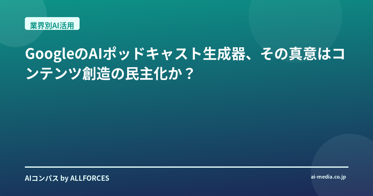 GoogleのAIポッドキャスト生成器、その真意はコンテンツ創造の民主化か?
